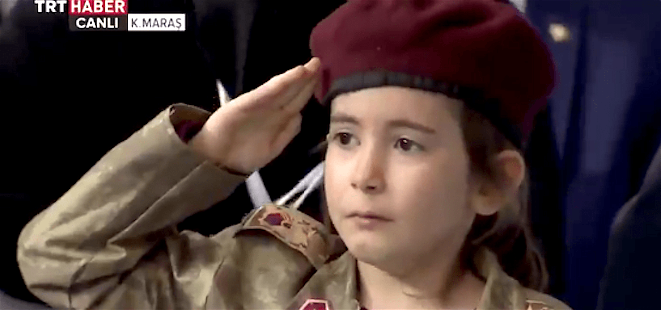 THIS IS SICK: #Turkey’s war-mongering president #Erdogan parades a little girl dressed in military fatigue in today’s convention speech in Maras province, tells that she is ready to be martyred and buried with a Turkish flag in her pocket. pic.twitter.com/U7kF6CW5n9