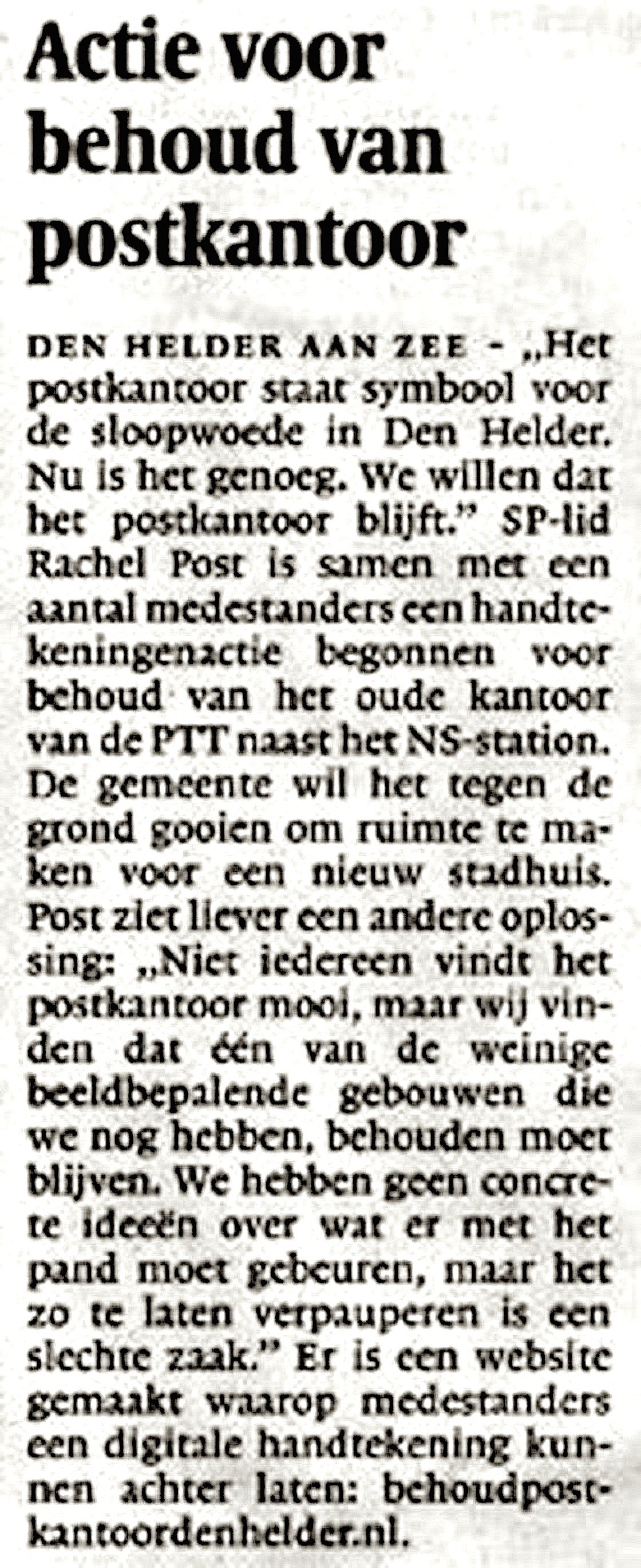 NHD – Actie voor behoud postkantoor Den Helder aan Zee 20 juli 2015Businessplan, Home, Media0 12 februari 2011 Dit delen: Klik om te delen op Facebook (Opent in een nieuw venster) Facebook Klik om te delen op X (Opent in een nieuw venster) X