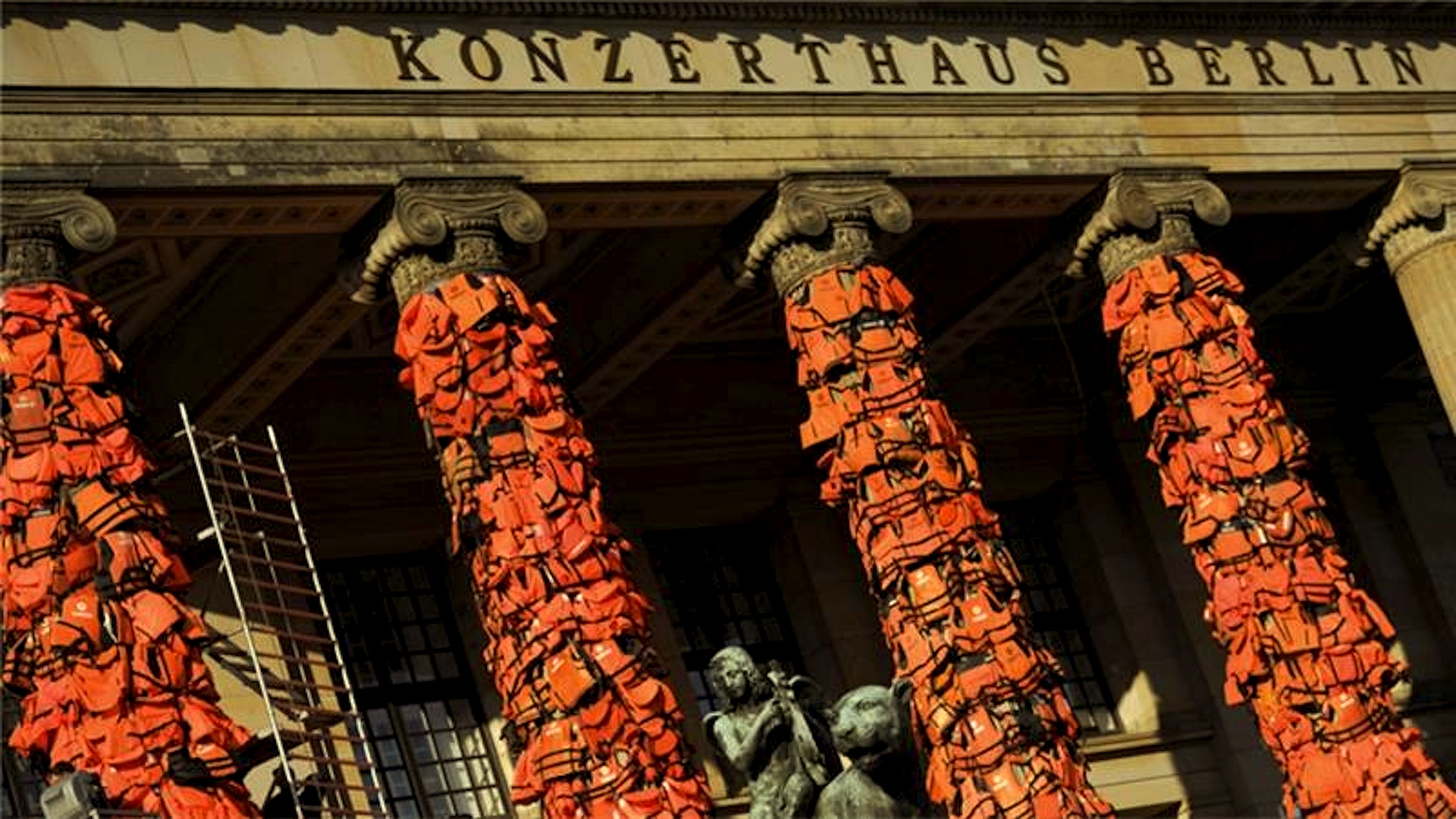 In his latest art installation in Berlin, the 58-year-old artist used 14,000 life jackets to cover the columns of the German city’s famous Konzerthaus venue.