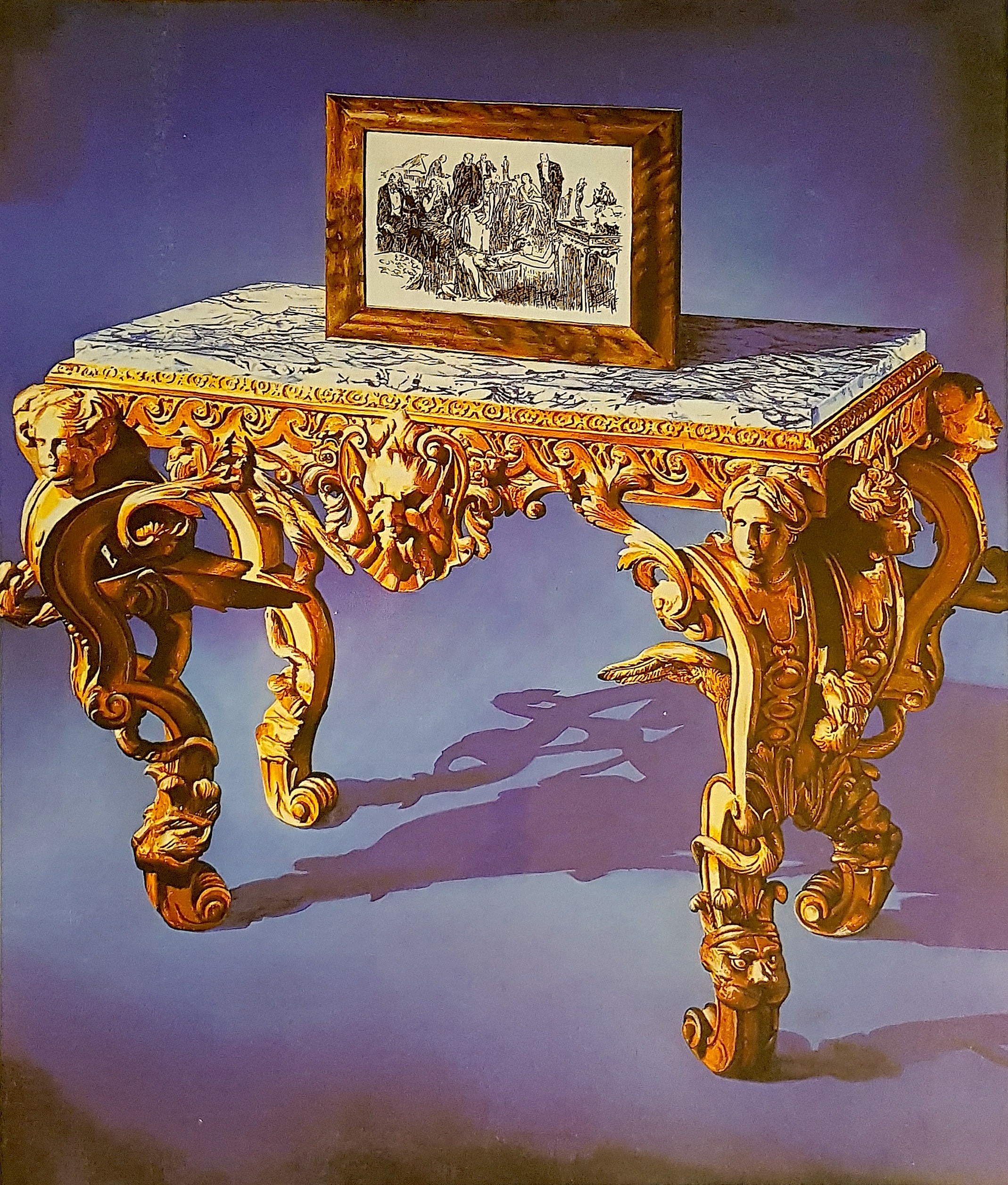 Auf einem Werk Rob Scholtes, das dieser 1987 auf der documenta 8 ausstellte, ist dieser Vorgang der Fetischisierung veranschaulicht. Das Bild ist – wie bei Scholtes Arbeitsweise üblich – eine Kompilation verschiedener Fundstücke. Ursprungsmaterialien sind die Abbildungen eines barocken Tisches und einer Zeichnung. Letztere stellt eine Frau dar, die sich in krampfhafter Verzückung an einen Tisch klammert, auf dem zwei Kleinskulpturen stehen. Seinen spezifischen Akzent bekommt das Bild dadurch, daß Scholte die Zeichnung in einen Rahmen steckt und auf den Tisch setzt, der dem auf der Zeichnung dargestellten ähnelt. In ironischer Brechung führt Scholte dem Betrachter den Vorgang der Fetischisierung vor Augen. Folgt dieser der bildimmanenten Logik, findet er sich unerwartet selbst in der Rolle des Fetischisten wieder. Wie die Frau auf der Zeichnung befindet sich der Betrachter vor einem Fetisch – nämlich Rob Scholtes Kunstwerk “Fetischismus” – und huldigt ihm. Auch der Betrachter ist zu einem Tempel der Kunst gepilgert, um den dort präsentierten Kultgegenständen seine Reverenz zu erweisen. Bildinhalt und Bildrezeption fallen punktuell zusammen.