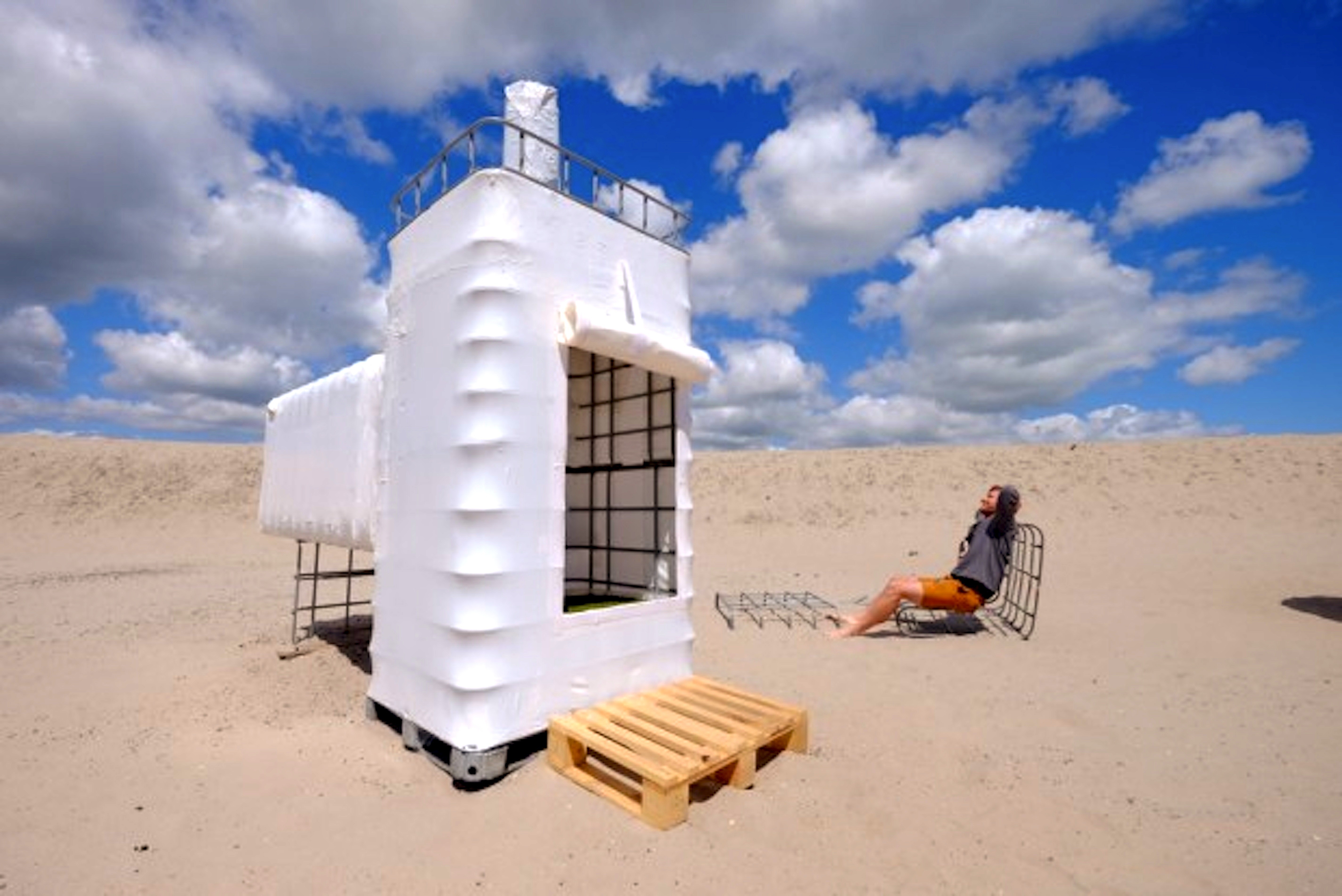 Leuke dingen doen met leuke mensen, dat is het belangrijkste, en niet voor het grote geld gaan. ‘Geen personeel, geen geld lenen van de bank, geen slaaf van ons zelf worden’, licht Oudendijk toe. ‘Sommige dingen zouden we best commerciëler kunnen aanpakken, zoals de drijvende hotelkamers gemaakt van afgedankte reddingscapsules. Maar daar moet je dan ook van alles voor plannen, en dat willen we niet. Ons hoofddoel is: niet plannen, waar we naartoe gaan. Veel gaat vaak niet door, maar dat is niet erg. Er komt wel weer iets anders. Misschien ga ik volgend jaar naar de Biënnale in Nantes, misschien krijgt Jan een solotentoonstelling in Litouwen, misschien gaan we workshops geven in Israël en weer in Zuid-Afrika. Maar misschien ook niet. Je moet ook niet te veel willen. Willen is hetzelfde als niets doen. Als je iets wilt, ga het dan doen, maar ga het er niet over hebben. Want dan doe je ondertussen niet wat je wilt.’
