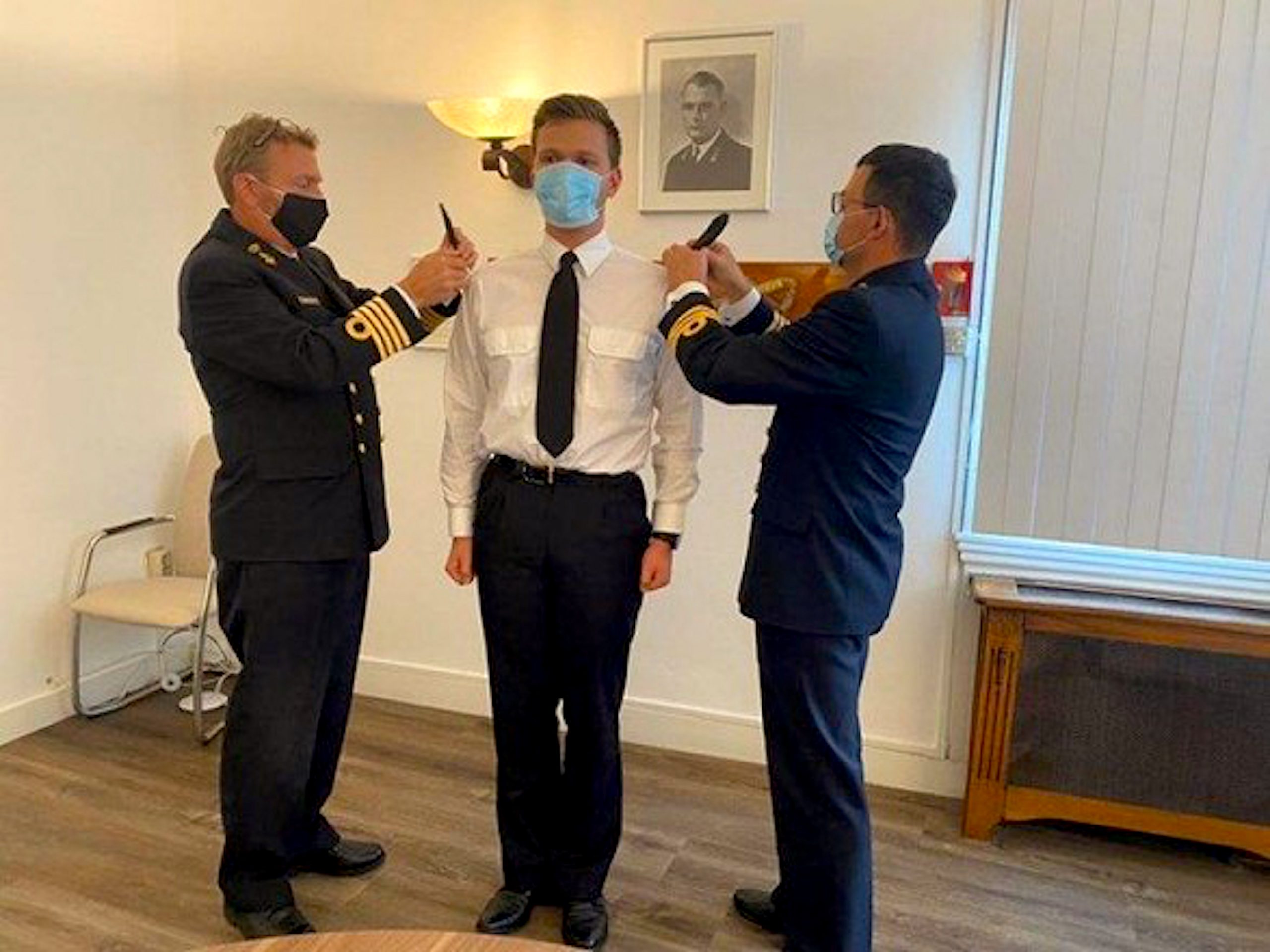Twee voorzitters van de KVMO hangen de nieuwe rang op Harmen Krul (foto KVMO)