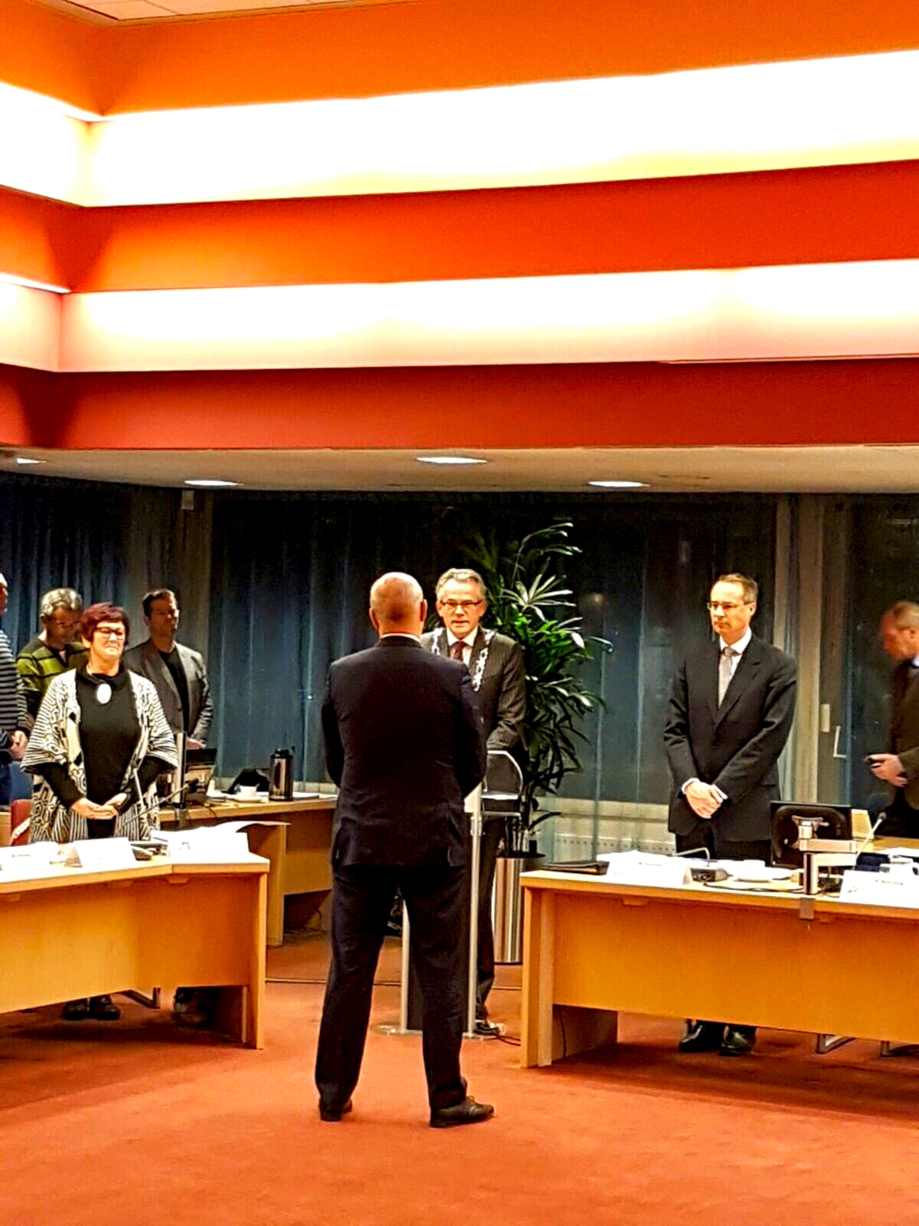 De vergadering begon met de beëdiging van wethouder Odd Wagner door burgemeester Koen Schuiling. Die officiële handeling ging gepaard met enige citaten van de filosoof Aristoteles door Schuiling. Burgemeester en wethouder kennen elkaar uit hun samenwerking in het vorige college. Wat opviel was dat Wagner in zijn hernieuwde optreden in de Helderse raad direct weer een daadkrachtige en efficiënte indruk maakte. Hij was ook de wethouder die samen met Pieter Kos het meest aan het woord was.