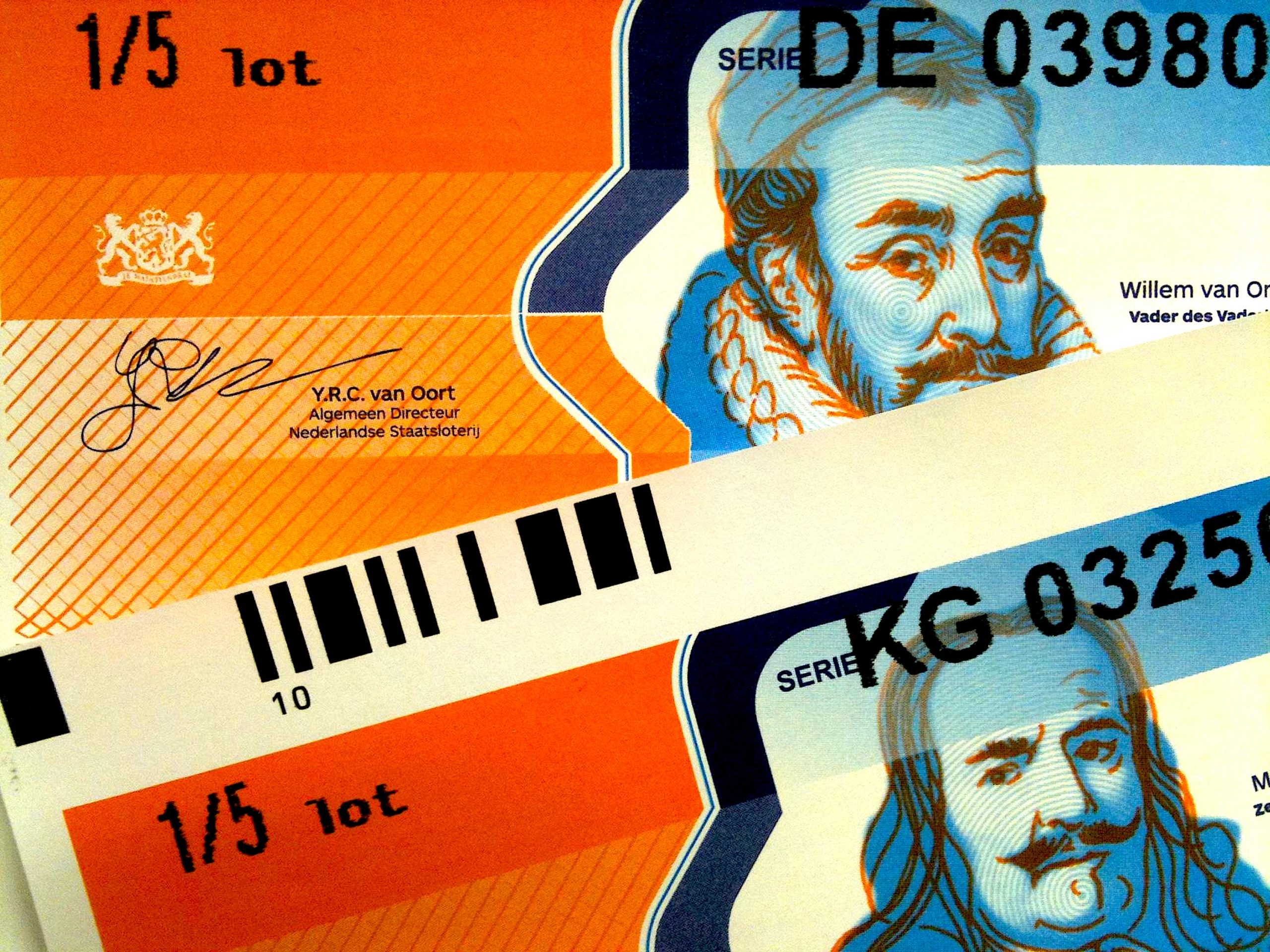 Twee 1/5 loten van de Nederlandse Staatsloterij (foto NHD)