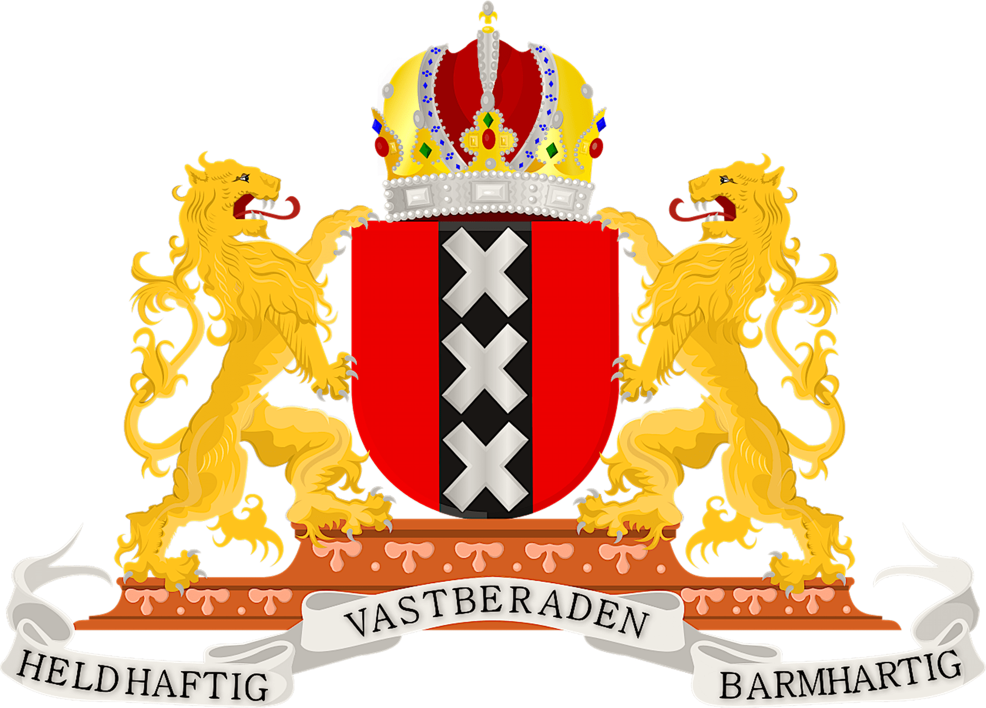 Zolang de opschriften van het Wapen van Amsterdam gelden, geld de steun van Den Helder, Gods Woorden en alle gebeden om jullie in het postkantoor te behouden.