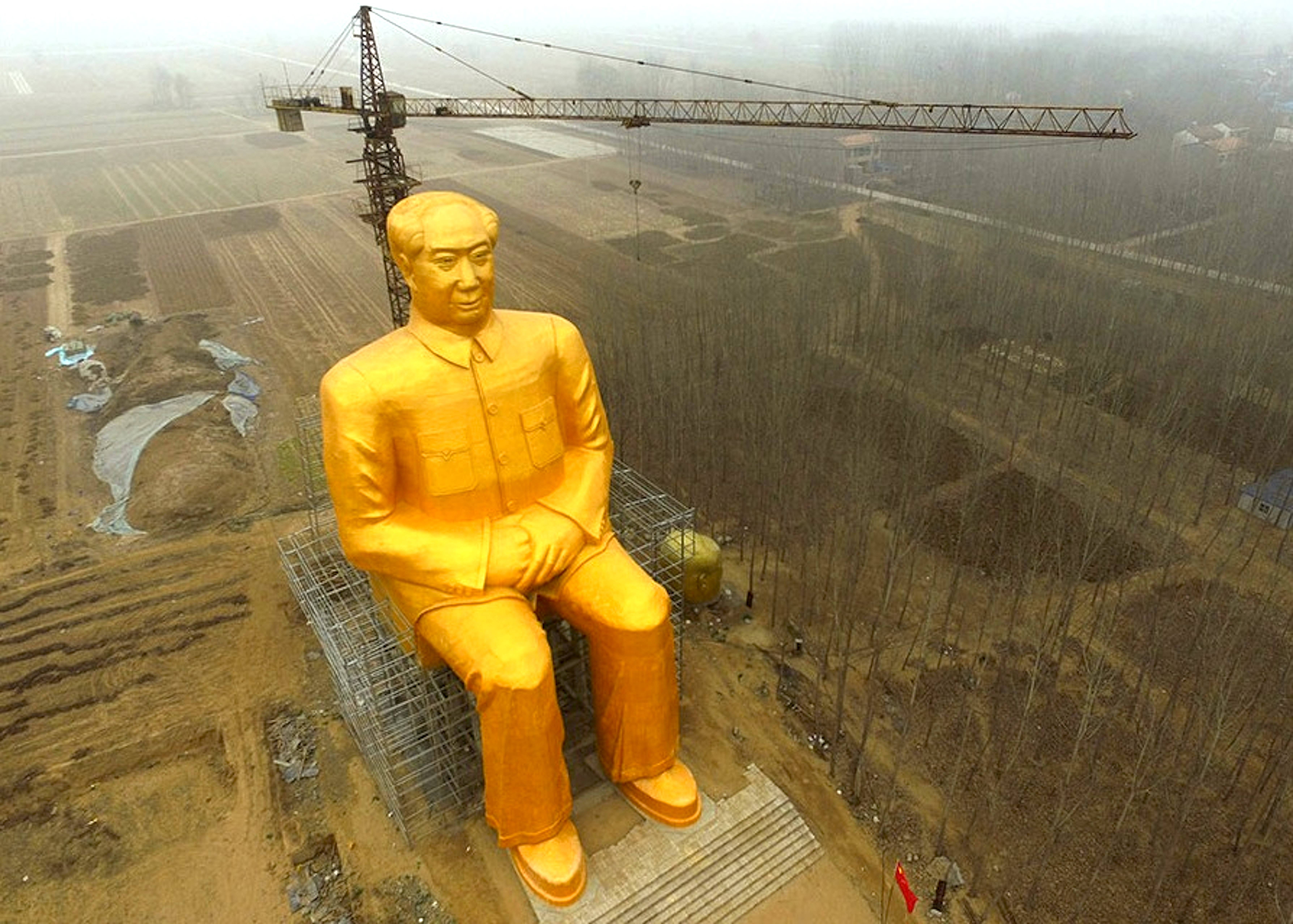 A towering, gold-toned statue of communist leader Mao Zedong has been erected in the rural fields of China’s impoverished Henan province by a group of anonymous local entrepreneurs who reportedly funded the project for three million yuan ($460,000). The statue has prompted onlookers around the world to question why anyone would want to memorialize such a controversial figure.