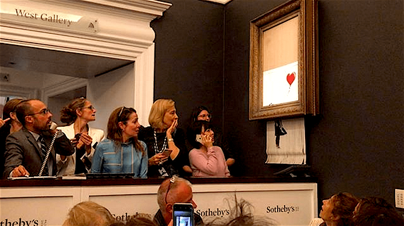 Colin Gleadell – Street Theater? A Famous Banksy Self-Destructs Live as Sotheby’s + Marco Weijers – Schilderij van 1,2 miljoen verpulverde zichzelf + Bedacht plan jaren geleden