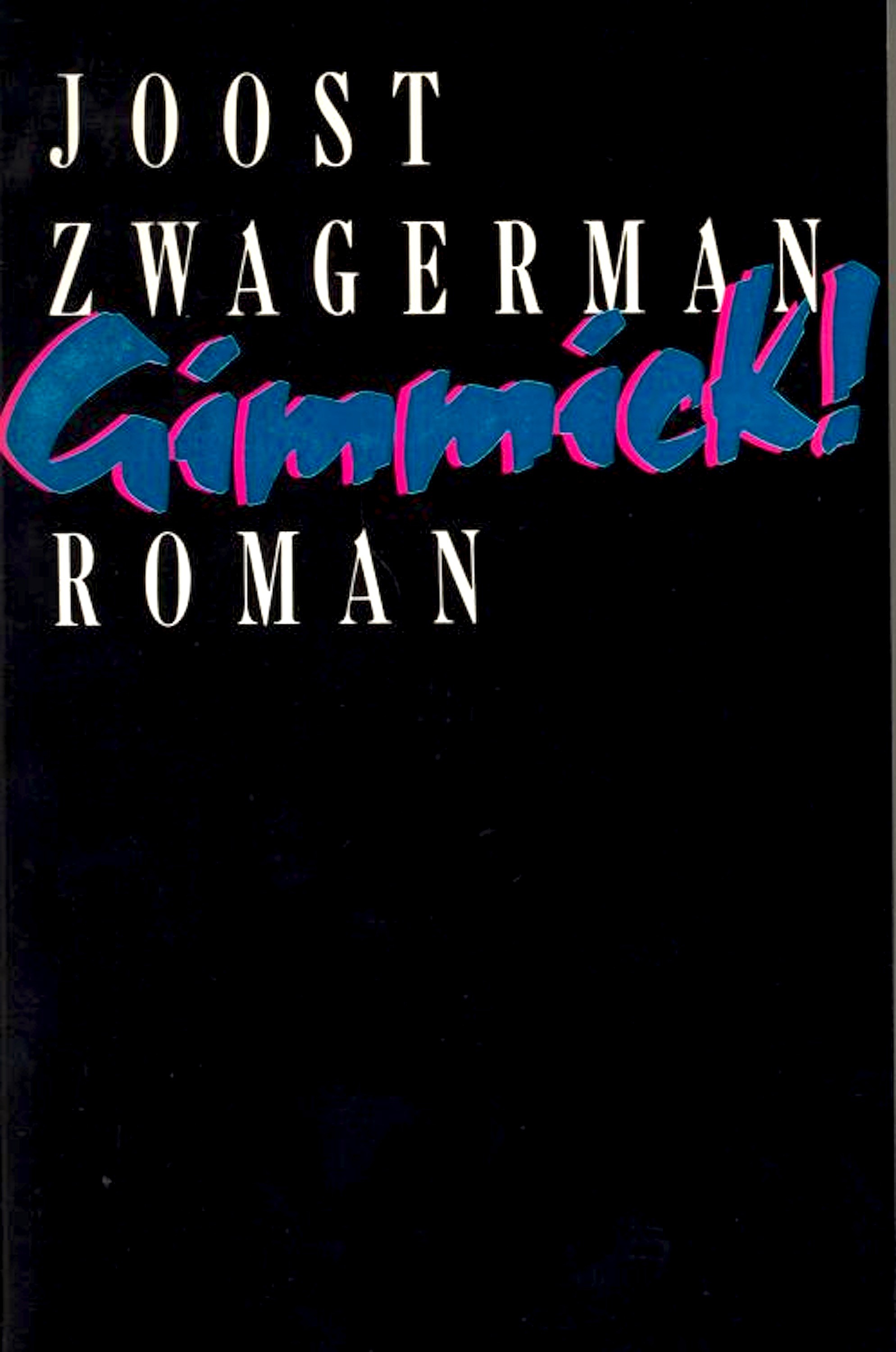 Ze wilden de wereld veranderen, maar ze wisten niet hoe. Ze dichtten en schilderden (vooral Bavink, die mal werd) en wisten dat de wereld te dom was om daar iets van te begrijpen. “Schilderen? Wie kon er nog schilderen, als je Bavink hoorde? Alles lieten de lui zich voorzetten, letterlijk alles. Ik moest maar eens een schilderij maken. Dat was ik zelf, Koekebakker. Hij zou me zeggen wat ik doen moest. ‘Je schildert twee horizontale banen, onder elkaar, even breed, een blauwe en een goudgele en in ’t midden van die blauwe baan maak je een ronde goud gele vlek. En dan zetten we in de catalogus: No. 666 De Gedachte, schilderij. En dan zenden we ’t in op mijn naam: Johannes Bavink, 2de Jan Steenstraat, nummer zooveel en we prijzen ’t voor f 800. Je zult eens zien wat ze er in ontdekken. Van alles, waar je zelf nooit een flauw benul van gehad hebt’.” Het waren jongens – maar aardige jongens. Ik ben in de Pijp, een mensenleven later, en er wordt mij een boek ter hand gesteld door een jonge schrijver, die ik – als ik hem niet zou kennen – zou herkennen, want ik ben hem drie jaar geleden al tegengekomen in een ander boek van zijn hand: De houdgreep. Hij is de jongen, lang, dun, donker, beweeglijk, struikelend over zijn woorden, op wie die aardige Adriënne uit dat boek verliefd is, totdat ze gruwelijk verraden wordt door een representant van de moderne media kunst. Joost Zwagerman (1963), het zondagskind van de media, maximaal poëet en verpersoonlijking van de punk en disco generatie, is één brok onzekerheid als zijn Gimmick! ter sprake komt, een niets ontziende schets van een stel hedendaagse Titaantjes. Lamlendigheid, cocaïne, porno, elkaar en iedereen schaamteloos besodemieteren – déze schildersbent is, in de verbeelding van Joost Zwagerman, gewoon tuig van de richel.