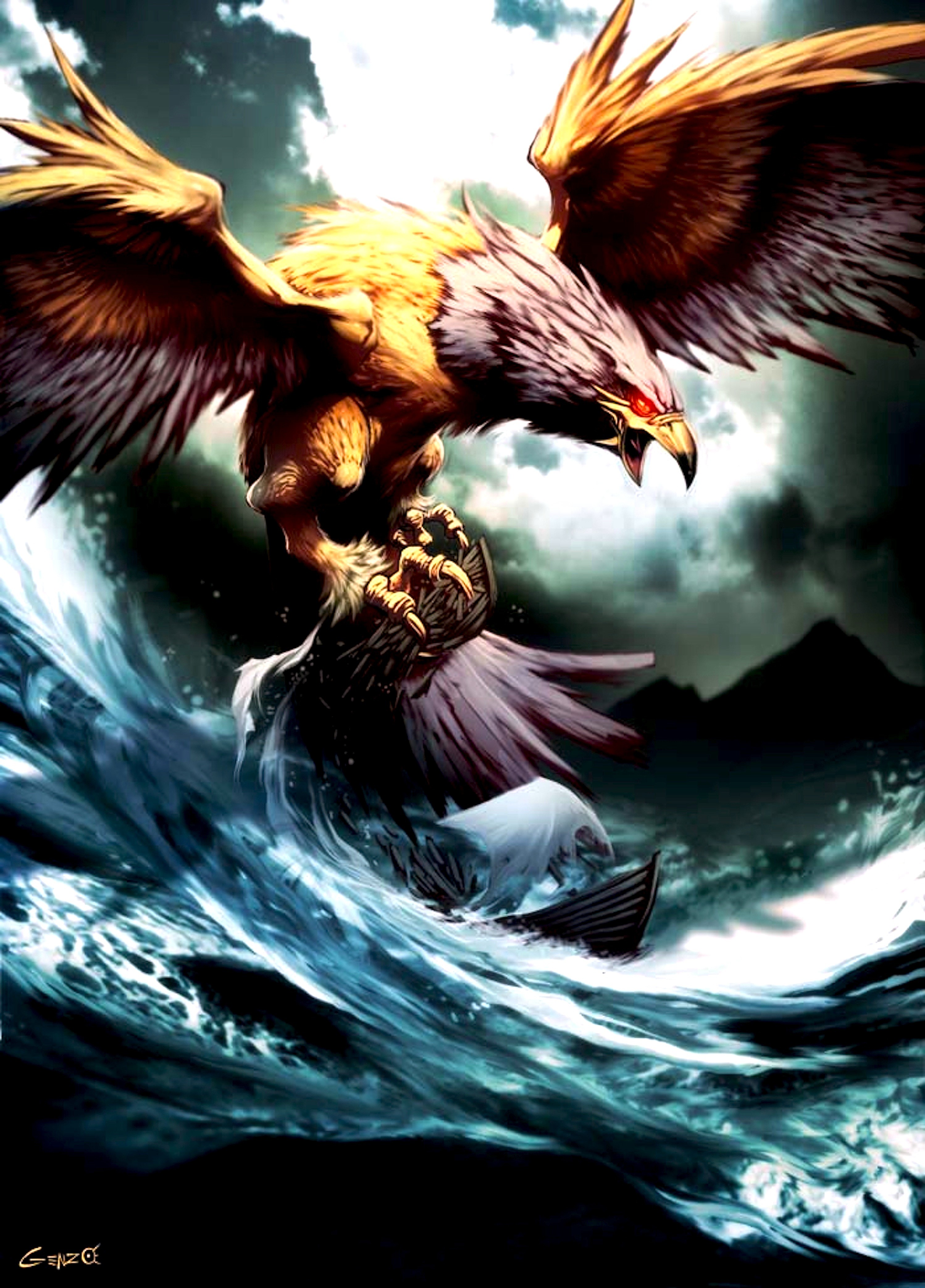 Daarop spreidde de adelaar de vleugels uit over het hoofd van de jongeman om hem schaduw te geven. Toen de held ontwaakte, vroeg de vogel hem: