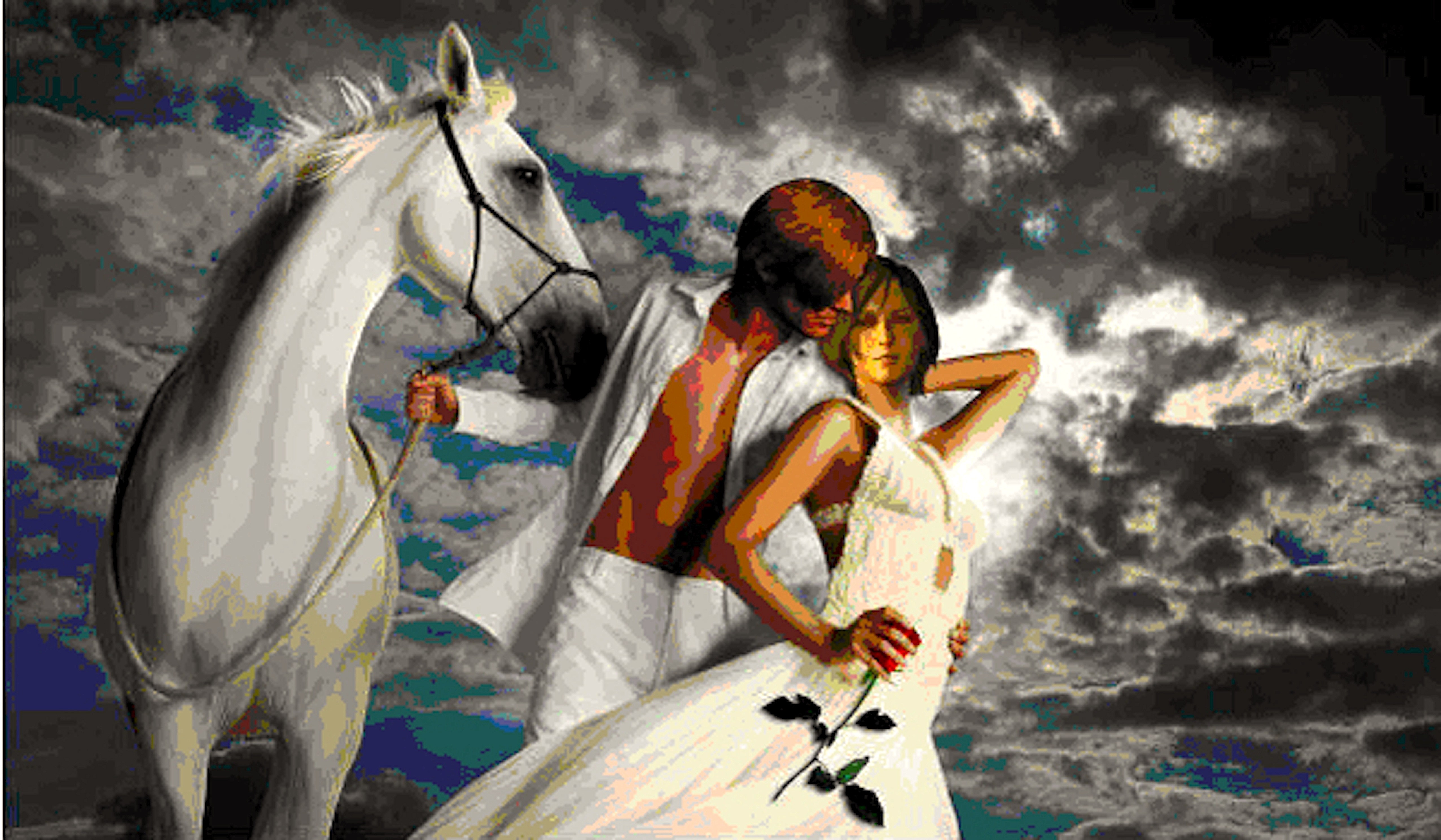Dat de prins op het witte paard een sprookjesfiguur is evident, maar dat hij voorkomt in sprookjes waarin de heldin in een betoverde slaap ligt (hoezo is ze zoekend?), is een fictie, waarschijnlijk gebaseerd op Walt Disney films, want in de betreffende sprookjes wordt met geen woord over de kleur van het paard gerept. Wat heet! Er wordt zelfs niet over een paard gesproken. Neem bijvoorbeeld Sneeuwwitje (KHM 53). Daarin komt de zoon van de koning in het bos en gaat naar het huis van de dwergen om er de nacht door te brengen. Hij krijgt van hen de glazen kist met daarin Sneeuwwitje in haar toverslaap. Hij laat de kist dragen door zijn bedienden op hun schouders en zij struikelen over een boomstomp en door de schok vliegt het stukje appel uit Sneeuwwitjes keel en ze ontwaakt. De prins legt alles uit en vraagt haar ten huwelijk. Ze zegt ja en samen gaan ze naar het paleis, waar hun huwelijk met veel statie wordt gevierd, etc. Geen woord over een paard dus. Ook zeer bekend is het sprookje van Doornroosje (KHM 50). Als ze 100 jaar ligt te slapen en rond het kasteel waar ze slaapt een dichte doornhaag is opgegroeid, is er een koningszoon, die naar het kasteel gaat, en de haag opent zich voor hem en hij kan gewoon naar binnen gaan. Weer wordt nergens over een paard gesproken. De archetypische bevrijder van de slapende prinses, Sigurd, die Brynhild wekt, was wel te paard, zijn beroemde paard Grani waarmee hij over de vlammenwal die Brynhild omringt springt; zijn paard was grijs, wat geteld wordt als wit, maar als bron van het spreekwoord zal het vanwege zijn ouderdom en relatieve onbekendheid niet gediend hebben.