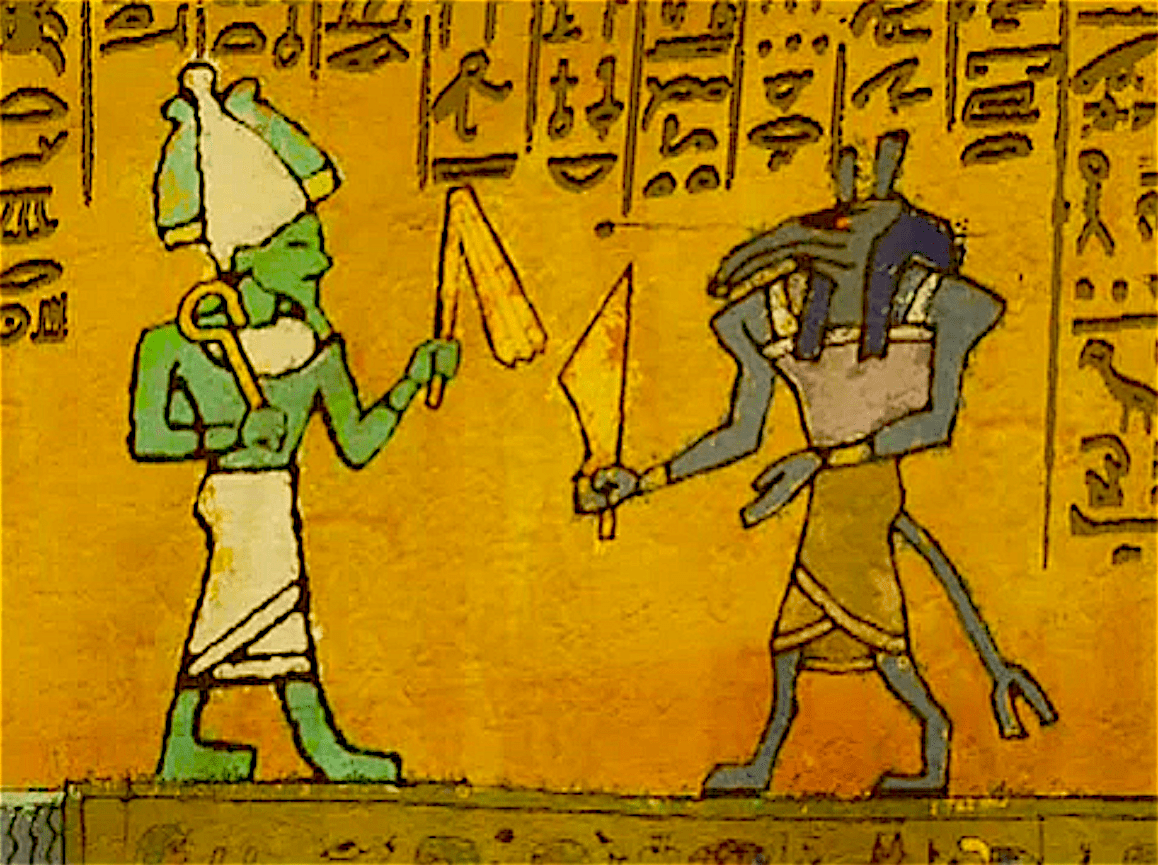 De twee broers, die elkaars vijanden zijn, komen we in de Egyptische mythologie tegen als Osiris en Seth. Het verhaal wordt verteld door Plutarchus, die Seth de naam Typhon gaf. Het verhaal begint met de toevoeging van de vijf dagen om het jaar te corrigeren.