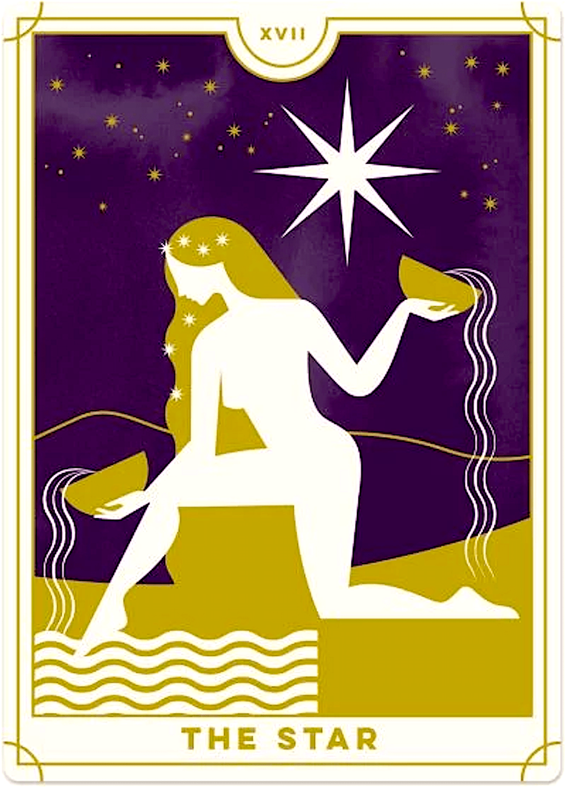 De Ster is de naam van tarotkaart 17. Op de afbeelding zien we een naakte jonge vrouw water gieten op de grond uit twee vazen. Het water dat ze uit de vazen giet is het symbool van het Levenswater, het universele oplosmiddel. De twee vazen of schalen symboliseren de positieve en negatieve containers waarin het Universele Leven is uitgedrukt in man en vrouw. De Maagd giet het levenswater uit op de aarde (het land en de zee), wat symboliseert dat de mens bewust dit Levensprincipe moet uitgieten naar de lagere koninkrijken door de kracht der gedachte, hetzij onuitgedrukt of uitgedrukt door geluid (spraak), opdat de hele aarde mag voortbrengen in harmonie. Wanneer de mens dit punt heeft bereikt in zijn spirituele ontwikkeling, is zijn aura zo verlicht en stralend geworden, dat deze gezien wordt door de elementalen van al de koninkrijken als een stralende ster, die ze graag volgen. Kortom, hij is een Ster of Lichtbrenger voor de lagere koninkrijken geworden. (Curtiss 1923, 243f) [Zie verder https://www.biddytarot.com/tarot-card-meanings/major-arcana/star/ of https://www.keen.com/articles/tarot/the-star-tarot-card.]