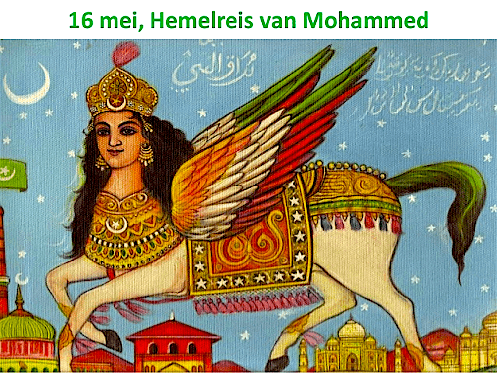 Voor meer informatie over de hemelreis van Mohammed, zie https://ghurabalbayn.wordpress.com/tag/buraq/: ‘Mohammed: ezelrijder of kameelrijder?