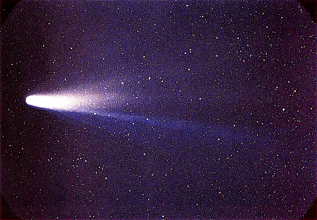 De komeet van Halley, gefotografeerd vanaf Paaseiland in maart 1986 (foto Wikipedia)