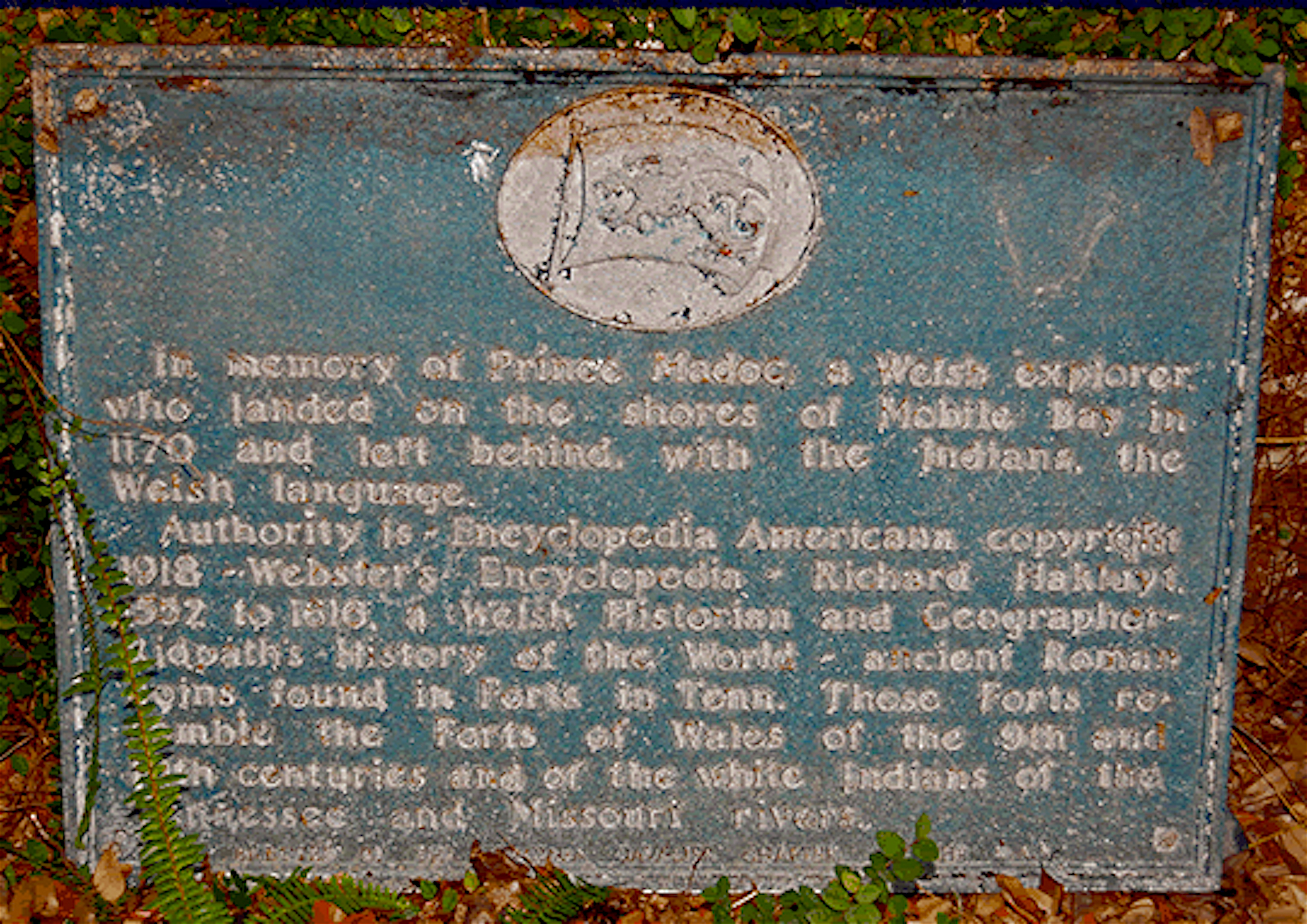 Als voorproefje van de Madocmania heb ik een foto van de herdenkingsplaat in Mobile, Alabama opgenomen. De tekst op de plaat luidt: