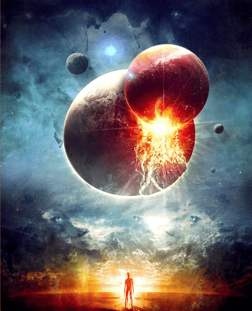 In ‘Werelden in Botsing’ stapte ik midden in het verhaal; het was echter niet het begin, er waren al eerder catastrofen geweest. Eén daarvan was de zondvloed, wereldwijd, niet zomaar een overstroming van de Eufraat, die enkele Bedoeïenen opschrikte, die komende uit de droge woestijn voor het eerst zoveel water zagen. Neen, het was geen lokale gebeurtenis, die enkele nomaden onder de indruk bracht; het was een kosmische gebeurtenis, niet beperkt tot de aarde alleen. Het raakte ons hele zonnestelsel.