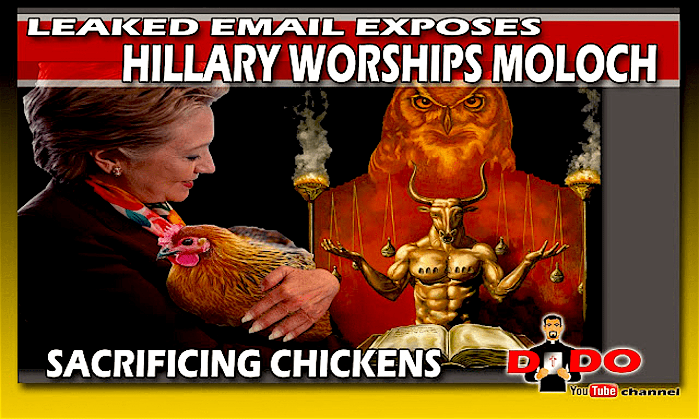 Veel is er niet te vinden over deze opmerking; het duidelijkst was het artikel http://freedom-articles.toolsforfreedom.com/clinton-podesta-email-pedophilia-satanism/: ‘Satanic References in Clinton-Podesta Email Chains: Sacrificing a Chicken in the Backyard to Moloch‘. Tekst: ‘It’s tempting to write this all of as wild conspiracy and rationalize it away, but you can’t when the proof is right in front of your face. Check out this email, number 30489, from the WikiLeaks archive (image above): “With fingers crossed, the old rabbit’s foot out of the box in the attic, I will be sacrificing a chicken in the backyard to Moloch . .” Sacrificing a chicken to Moloch. This may be taken literally, or it quite possible that in pedophilia code that chicken means child, in which case it may be referring to child sacrifice.’ Zie vergelijkbaar http://www.thesleuthjournal.com/sacrificing-chicken-moloch-clinton-podesta-email-scandal/.