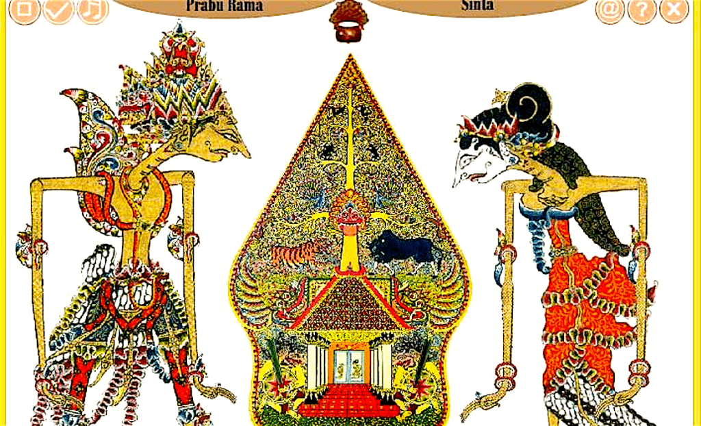 Bovenstaande samenvatting is afkomstig uit een ongemarkeerd krantenknipsel, dat ik aantrof in een Indonesische uitgave van de Ramayana door Sunardjo Haditjaroko (Djakarta 1961). Het verhaal is het onderwerp van wajang voorstellingen. Deze worden in de avond gehouden als het donker is en de insecten vliegen rond de flikkerende vlam van de olielamp, die zijn verblindende licht werpt op het grote witte scherm op het toneel. Onder aan het schermdoek staan de prachtige leren poppen netjes gearrangeerd, hun lichaam stokken ferm geplant in bananenstammen geplaatst onder het scherm zelf. Aan de rechterhand kant zijn de goede karakters, aan de linkerhand kant de slechte. De open ruimte tussen hen in, ongeveer twee meter breed, is het toneel. Hier zullen de poppen tot leven komen en zullen, net als echte mensen, ieder op zijn beurt en op zijn eigen wijze, het eindeloze pad naar menselijk geluk vervolgen. De muziekinstrumenten, een stuk of tien in totaal, staan voor het scherm.