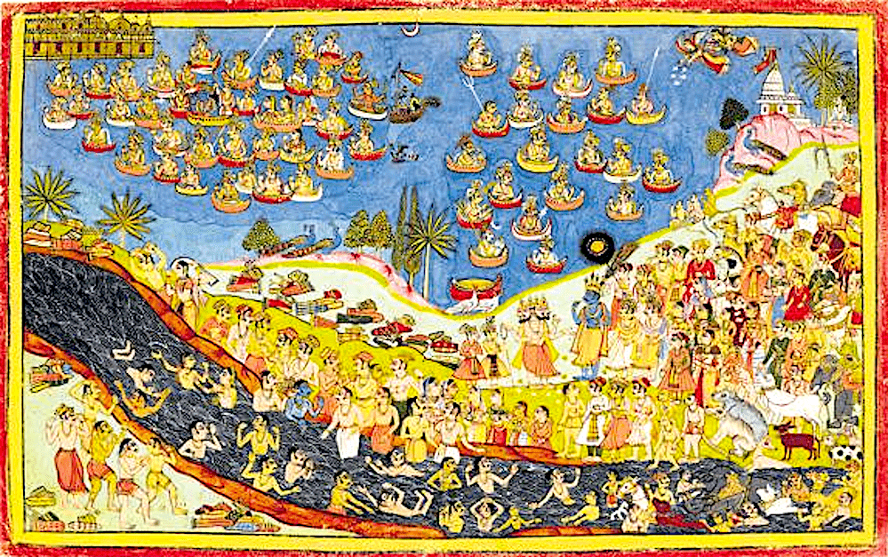 Devas in heaven approach Brahma for help against the Rakshasa king, Ravana, an invincible warrior who had A boon from Brahma that no one, except A man could kill him (foto Roli Books)