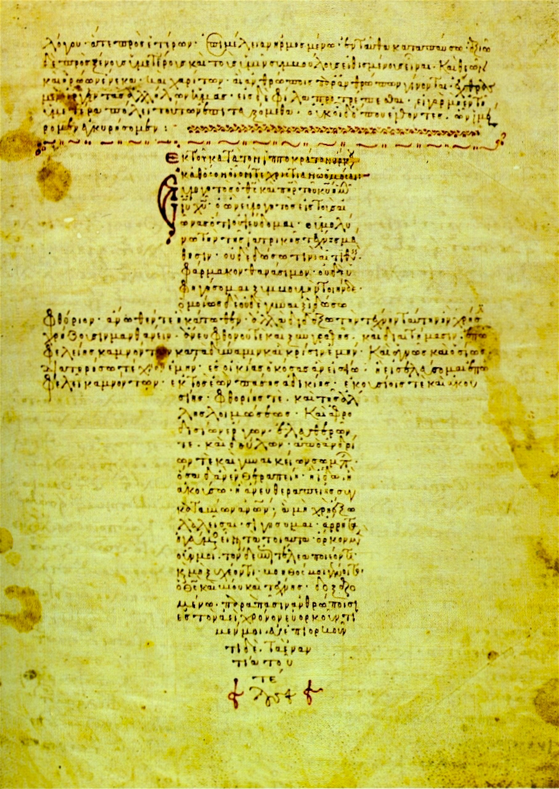 Manuscript van de Eed van Hippocrates uit de 12e eeuw, in de vorm van een kruis (foto Wikipedia)