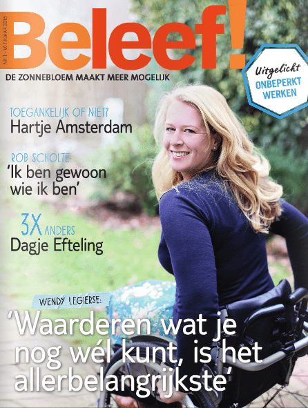 De Zonnebloem – Beleef Nr.1 Lente 2015 19 maart 2015Home, Interview, Media, Portretten0 Beleef! De Zonnebloem maakt meer mogelijk Uitgelicht ONBEPERKT WERKEN TOEGANKELIJK OF NIET? Hartje Amsterdam ROB SCHOLTE: ‘Ik ben gewoon wie ik ben’ 3X ANDERS Dagje Efteling Wendy Legierse: ‘Waarderen wat je nog wél kunt, is het allerbelangrijkste’ Dit delen: Klik om te delen op Facebook (Opent in een nieuw venster) Facebook Klik om te delen op X (Opent in een nieuw venster) X