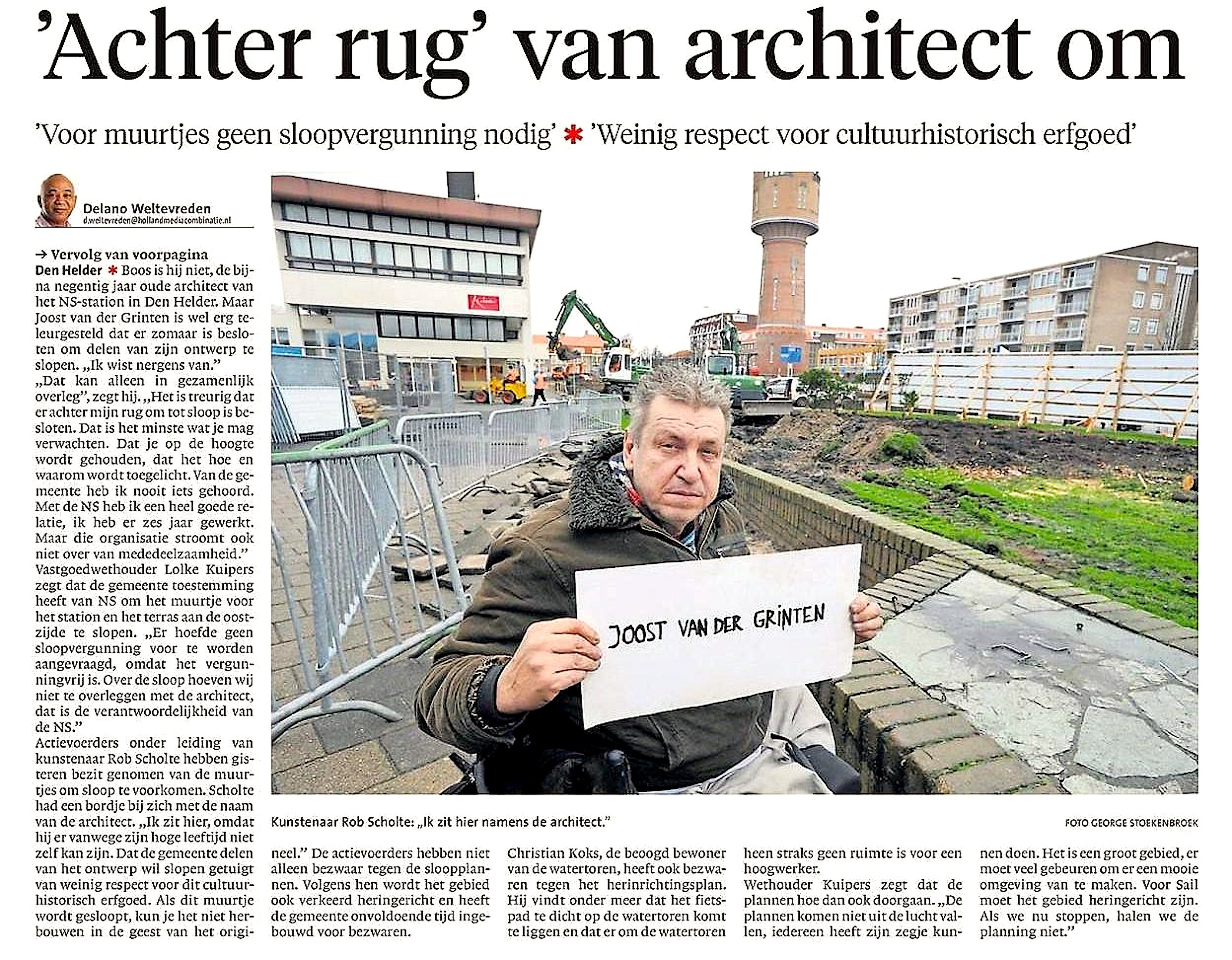 Delano Weltevreden – ‘Achter rug’ van architect om: ‘Voor muurtjes geen sloopvergunning nodig’ | ‘Weinig respect voor cultuurhistorisch erfgoed’ 13 januari 2017Businessplan, Copyright, Home, Interview, Locatie, Media, Portretten0 NHD, 12 januari 2017 http://www.noordhollandsdagblad.nl/stadstreek/denhelder/?lref=menusub Dit delen: Afdrukken (Opent in een nieuw venster) Print E-mail een link naar een vriend (Opent in een nieuw venster) E-mail Delen op Pinterest (Opent in een nieuw venster) Pinterest Delen op Bluesky (Opent in een nieuw venster) Bluesky Delen op Nextdoor (Opent in een nieuw venster) Nextdoor Delen op LinkedIn (Opent in een nieuw venster) LinkedIn Delen op WhatsApp (Opent in een nieuw venster) WhatsApp Delen op Threads (Opent in een nieuw venster) Threads Delen op Tumblr (Opent in een nieuw venster) Tumblr Delen op Mastodon (Opent in een nieuw venster) Mastodon Delen op Reddit (Opent in een nieuw venster) Reddit Share op Facebook (Opent in een nieuw venster) Facebook Delen op Telegram (Opent in een nieuw venster) Telegram Delen op X (Opent in een nieuw venster) X