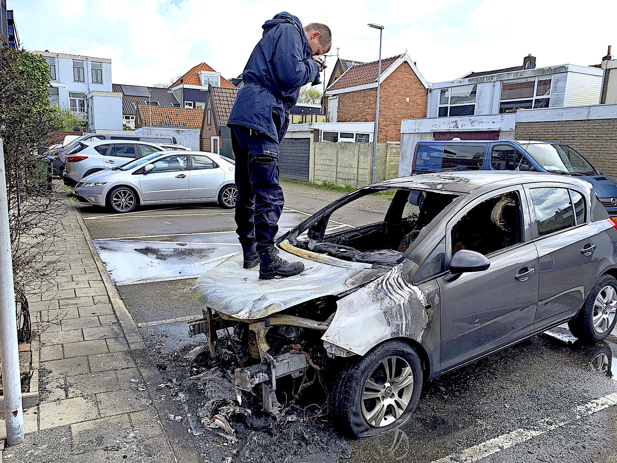 De laatste autobrand is het gesprek van de dag in de buurt. Woensdagmiddag rond lunchtijd staat de grijze Opel Corsa, Bouwjaar 2012, nog steeds op de Gehandicapten Parkeerplaats. Een plas bluswater ligt op het asfalt. Rond de auto liggen roetdeeltjes en glasscherven. De brandlucht is nog duidelijk waarneembaar.