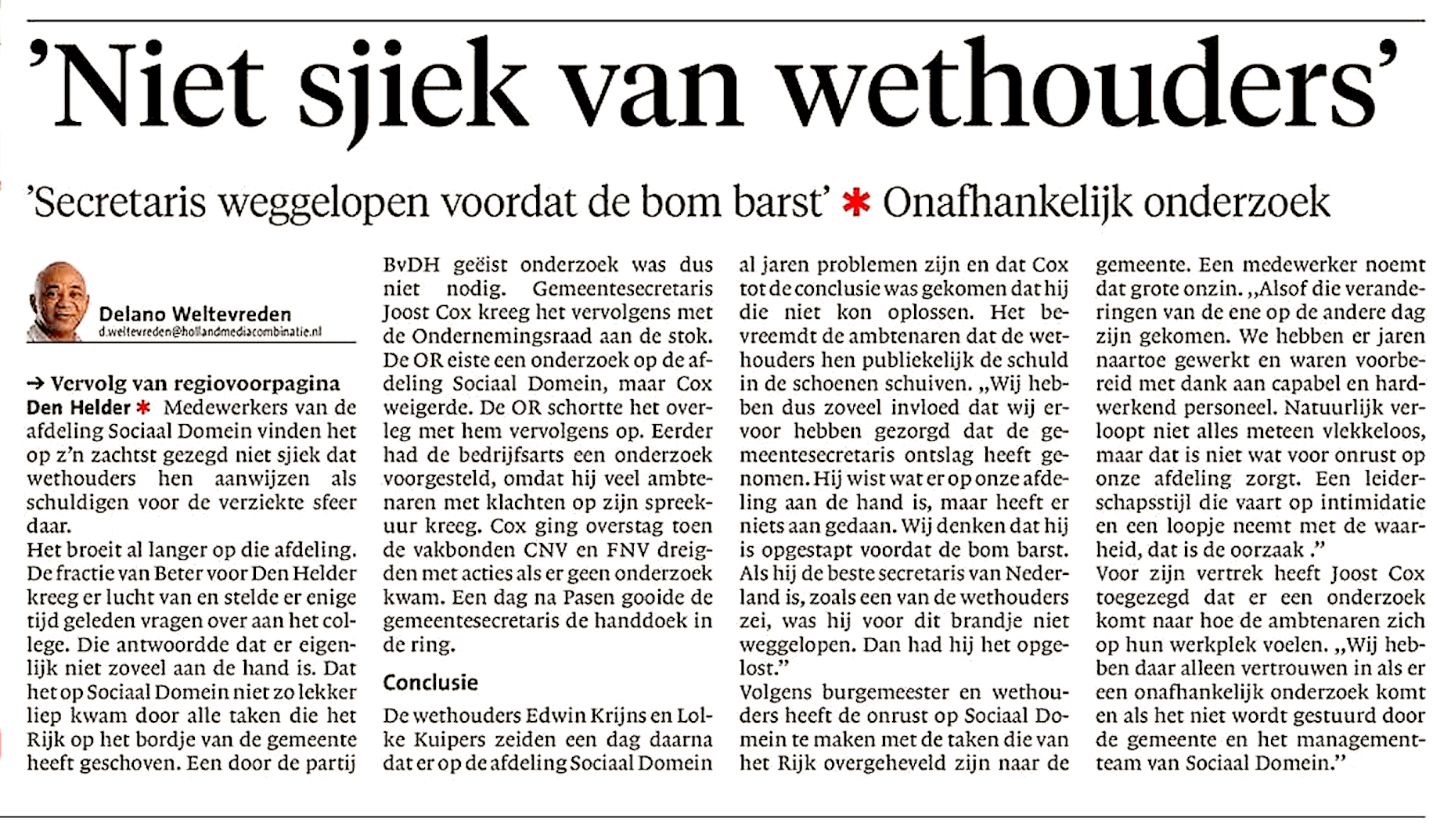 Delano Weltevreden – ‘Niet sjiek van wethouders’