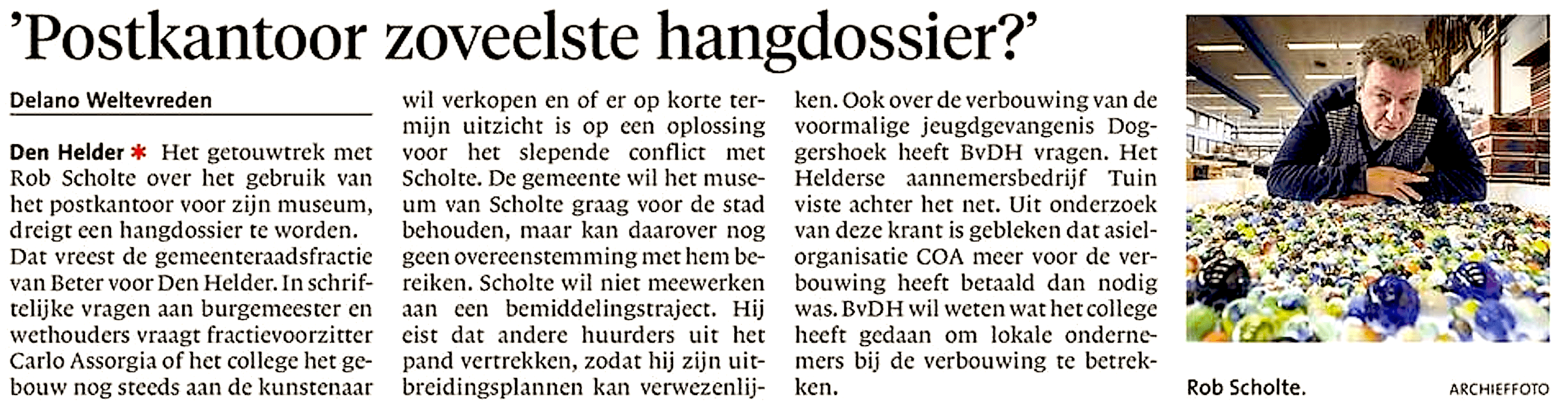 Delano Weltevreden – ‘Postkantoor zoveelste hangdossier’