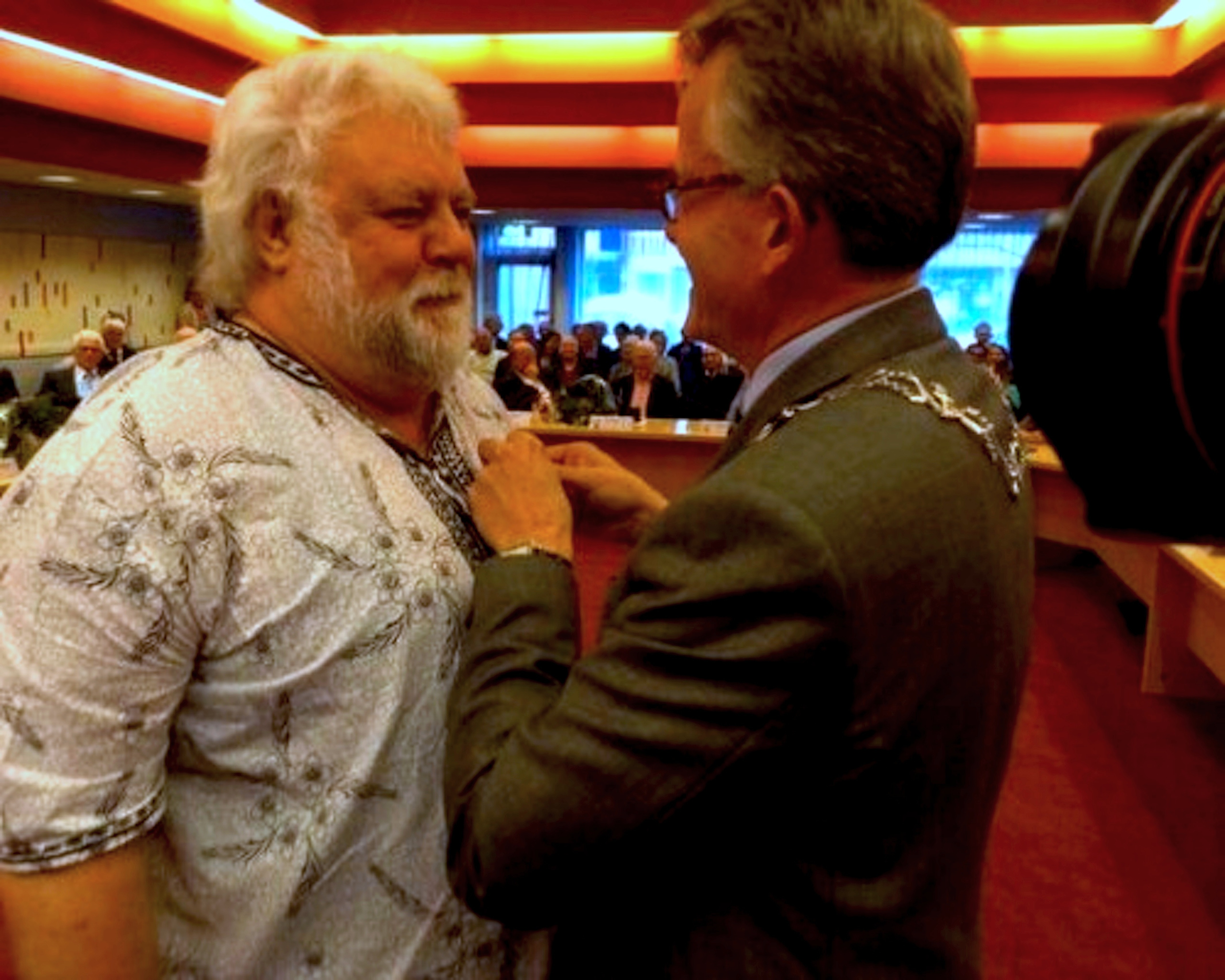 Typerend wel zo’n zegswijze: “door de strot proberen te drukken”. Het zegt iets over de democratische zienswijze van de krant, en van de coalitie en college. Hoezo door de strot drukken? Waren er niet al diverse stemmingen van 18-13 die de coalitie won, en waar er helemaal geen sprake was van “door de strot drukken”? Toen telde de coalitie toch keurig haar zegeningen? Nu heeft de Raad gesproken, na een lang debat, en behoort het college gewoon de motie uit te voeren, zonder mitsen en maren. En anders moeten ze opstappen. Want het was immers ook de kiezer die een college wenste dat geen nieuw stadhuis ging bouwen. Overigens, de negen miljoen is ook nog teveel, het gaat om keurig bijhouden, niet renoveren; het is opgeschroefd wisselgeld van de Stadspartij, die daarmee haar blazoen nog niet heeft opgeschoond.