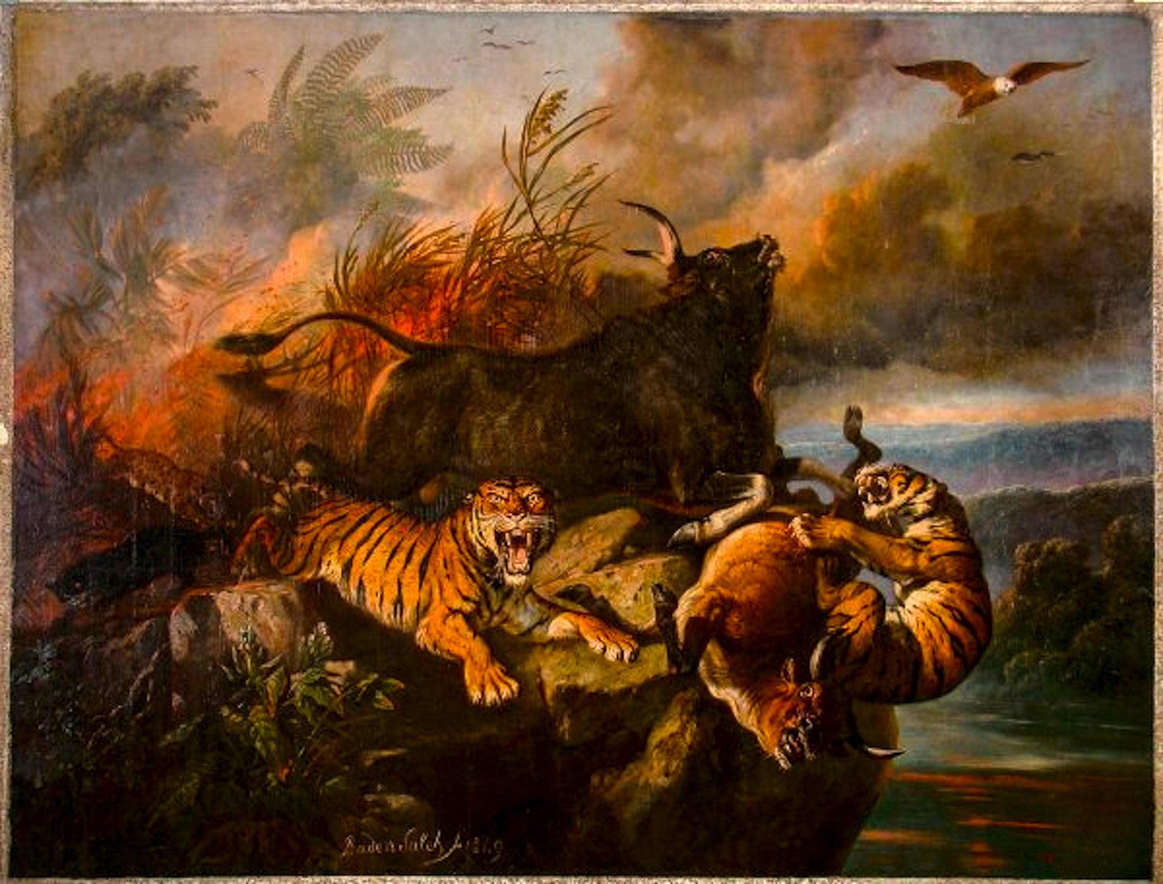 Boschbrand (Forest Fire), painted by Raden Saleh in 1849, was discovered in a depot in Rijkswijk in 2006 in a ‘deplorable’ condition. The store belonged to Instituut Collectie Nederland, which manages the Dutch state art collection, raising questions about its ownership. The government insists private works belonging to the royal family are often stored there.