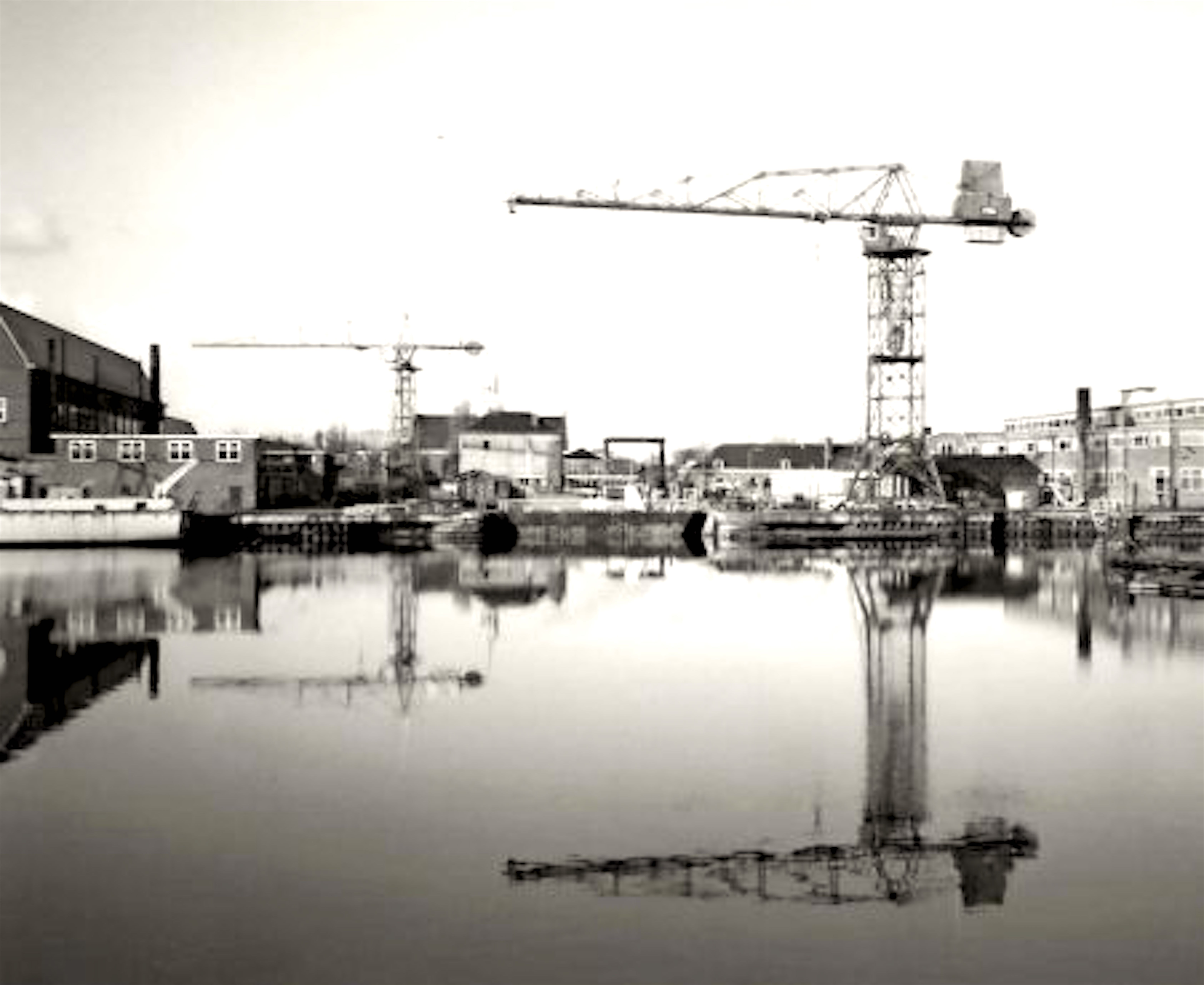 Twee torenkranen staan er op het terrein van Willemsoord. Ooit waren dat er vier. Menig werviaan weet zich verdwenen kraan nummer drie te herinneren.