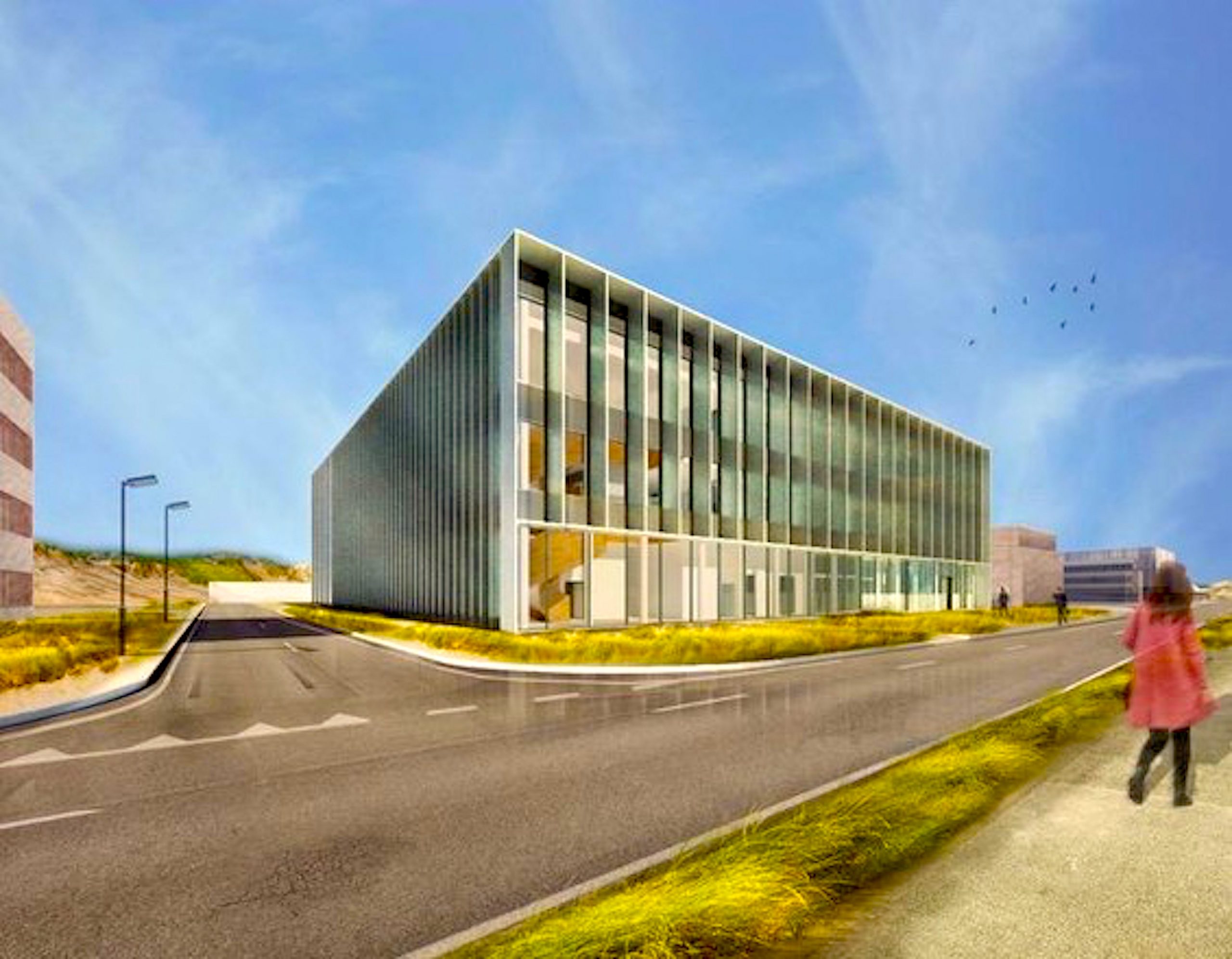 Er is al een ontwerp voor het NHC gebouw, gemaakt door het Rotterdamse architecten bureau Broekbakema (https://www.broekbakema.nl/). Geldermans “Het pand krijgt glazen gevels. Medewerkers kunnen volop uitkijken op de prachtige duinomgeving.”