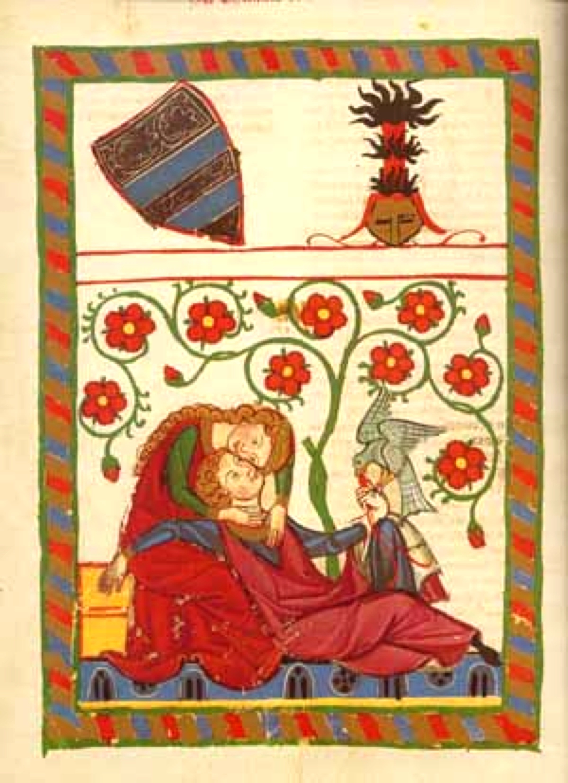 “Luister eerst naar mijn verhaal lieve ridder,” zegt Sanderijn. “In een prachtig dal staat een boom vol in bloei. Iedereen komt erop af en geniet van de kleur en geur van de bloesems. Dan stort zich een valk omlaag en rooft een bloesempje. Moet de boom daarom worden gehaat en gemeden?”