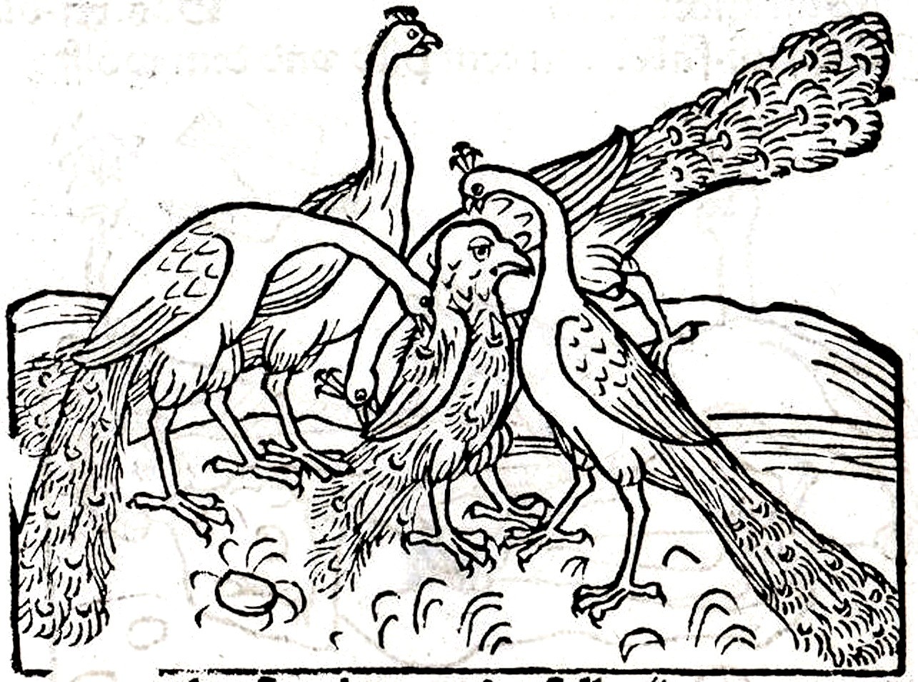 Een bijzonder ijdele groenvink vindt ergens een aantal verloren pauwenveren. Prachtig groen en blauw zijn ze. Maar als hij zich uitgedost als pauw bij zijn zogenaamde soortgenoten voegt, rukken deze hem zwaar gekrenkt de veren van het lijf en schelden hem de huid vol. Dus ziet hij zich gedwongen terug te keren naar zijn eigenlijke verwanten.