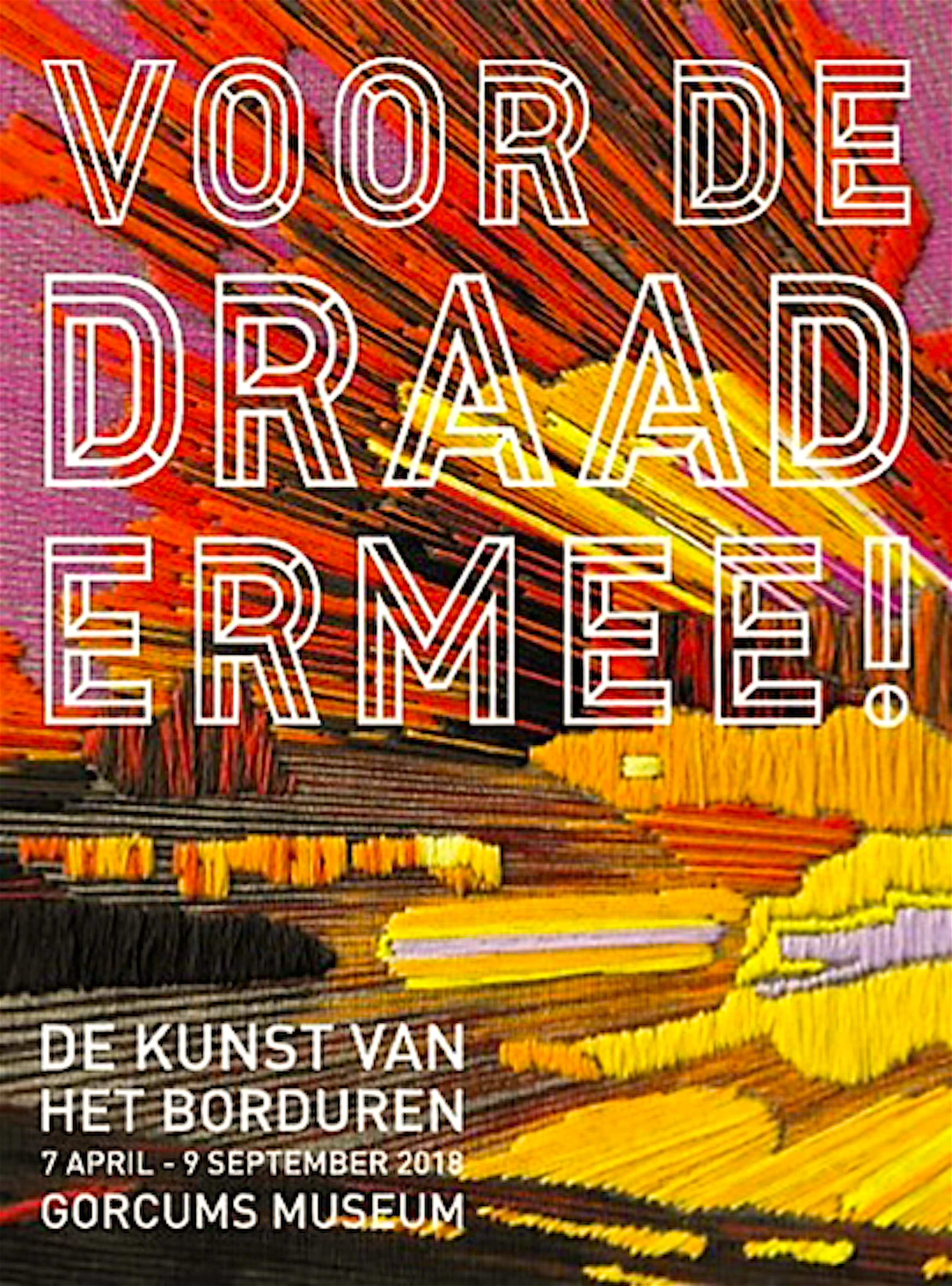 Nadat Linda Hanssen, expert op het gebied van textiel en gastconservator van de expositie, een korte geschiedenis van borduren onder de aandacht gebracht heeft, is er een borduur performance door leerlingen van het Fortes Lyceum. Uiteindelijk wordt het woord ‘open’ gevormd en dat is het startsein voor iedereen om de oversteek te maken naar het Gorcums Museum.