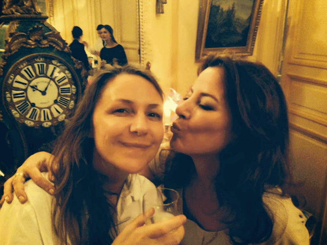 Diana Stigter van Stigter Van Doesburg from Amsterdam kisses Rachel Williams from Vilma Gold London at Reception in the Netherlands Ambassador’s Residence during the FIAC Art Fair in Paris 24 october 2013 (foto Fast Hands in Motion)