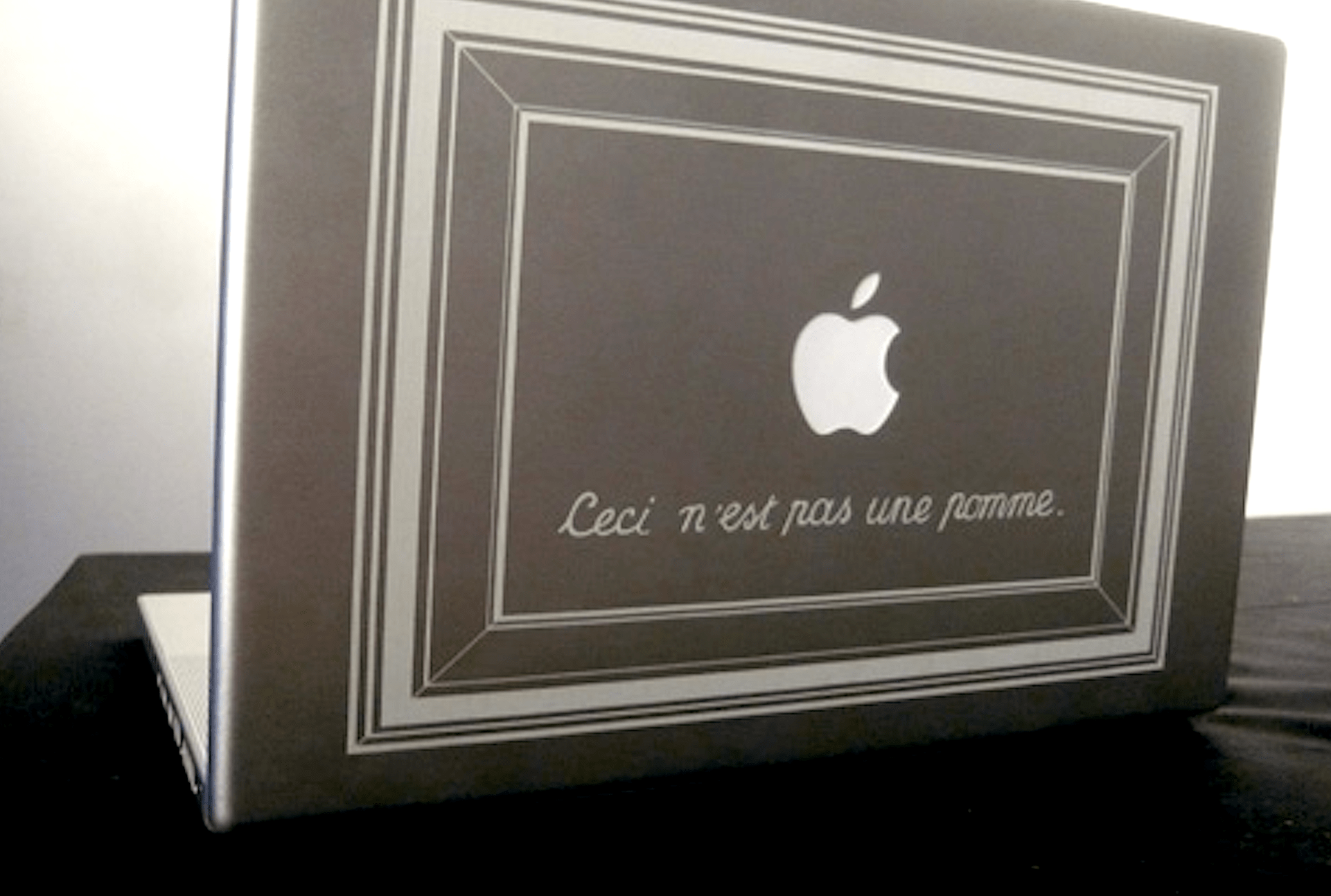 Ceci n’est pas une pomme (or, The Treachery of Laser Engravers) is an homage to the original honest image. The subject already existed; it just needed to be framed.
