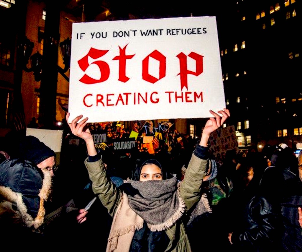 “If You don’t Want Refugees, STOP Creating them” (foto Twitter)