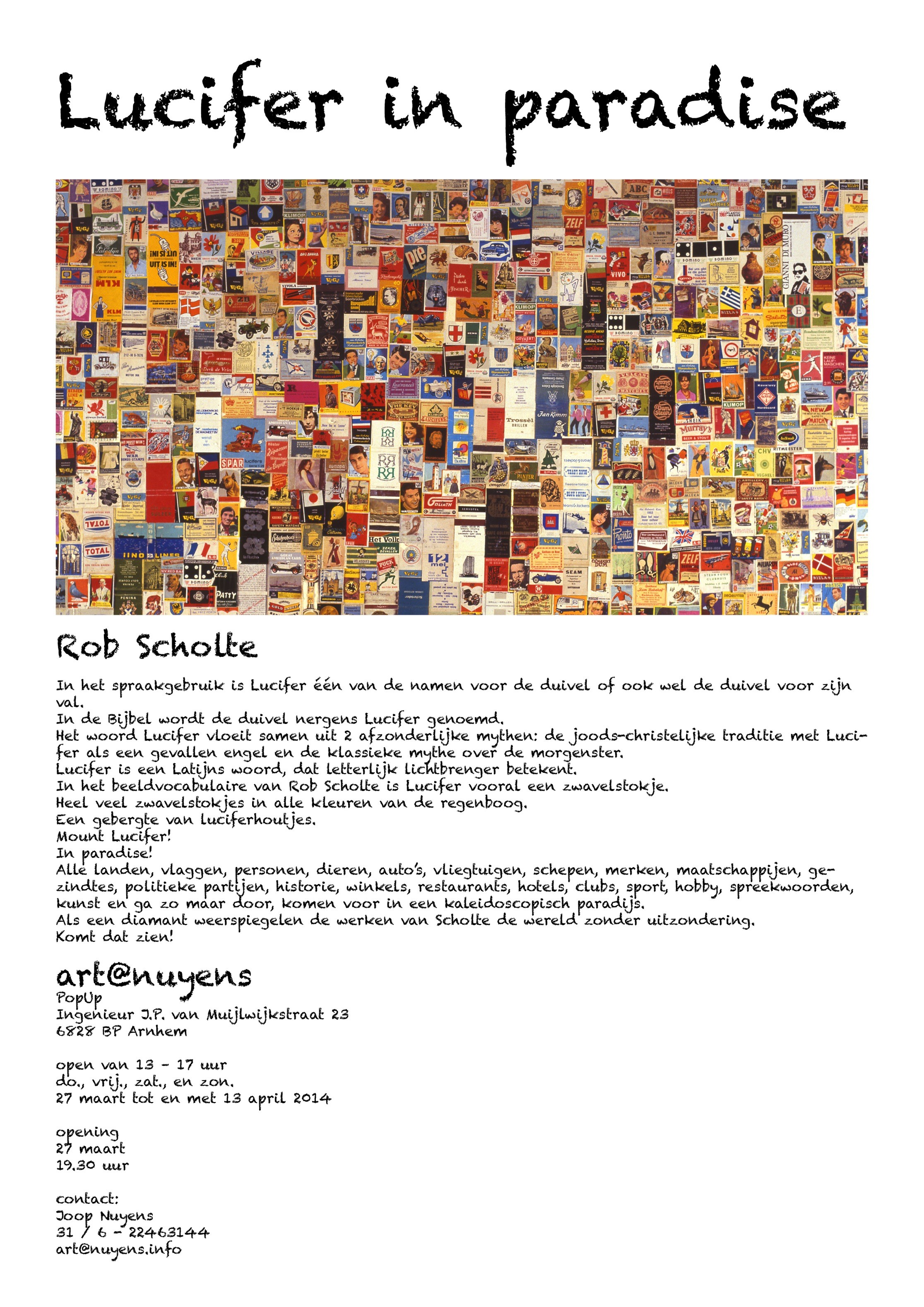 Flyer voor Lucifer in paradise van Rob Scholte bij art@nuyens