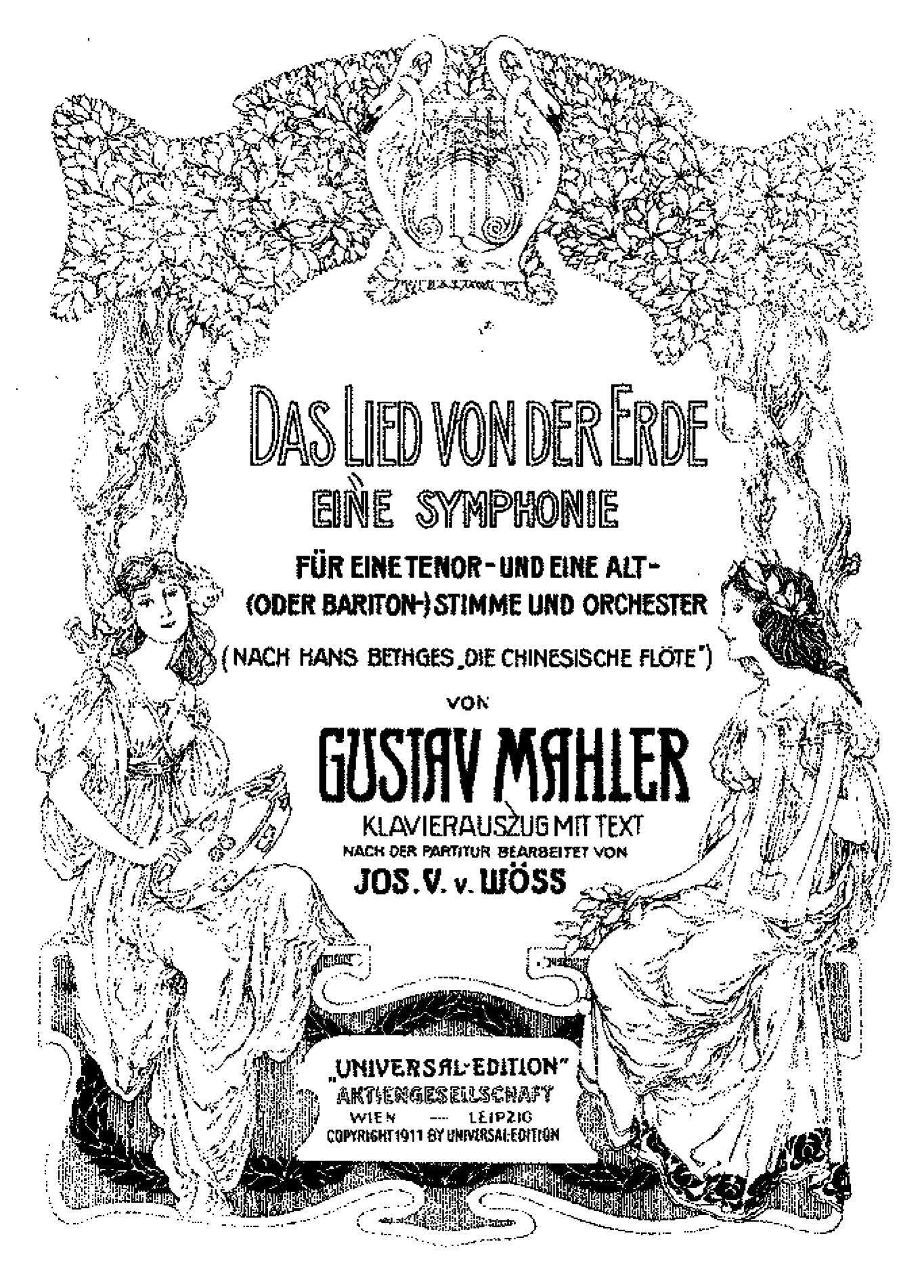 Das Lied von der Erde, eine Symphonie für eine Tenor- und eine Alt- (oder Bariton-) Stimme und Orchester is een grote symfonische liederen-cyclus van componist Gustav Mahler (1860-1911). De cyclus ontstond gedurende 1908 en 1909 en is geënt op gedichten naar oud-Chinese bronnen van Hans Bethge (1876-1946). Deze Duitse dichter vertaalde de gedichten uit het Frans, waarbij hij zich baseerde op de vertaling van de sinoloog Marie-Jean-Léon, Marquis d’Hervey de Saint Denys (1822-1892). Bethge’s bloemlezing Die chinesische Flöte (1907), waarvan ook Mahler gebruikmaakte, was een immens populair voorbeeld van Europese literaire chinoiserie.