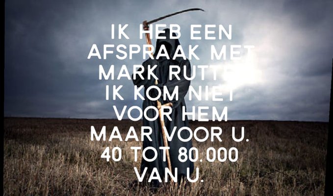 Ik heb een afspraak met Ruttte, ik kom niet voor hem, maar voor U, 40 tot 80.000 van U (foto Twitter)