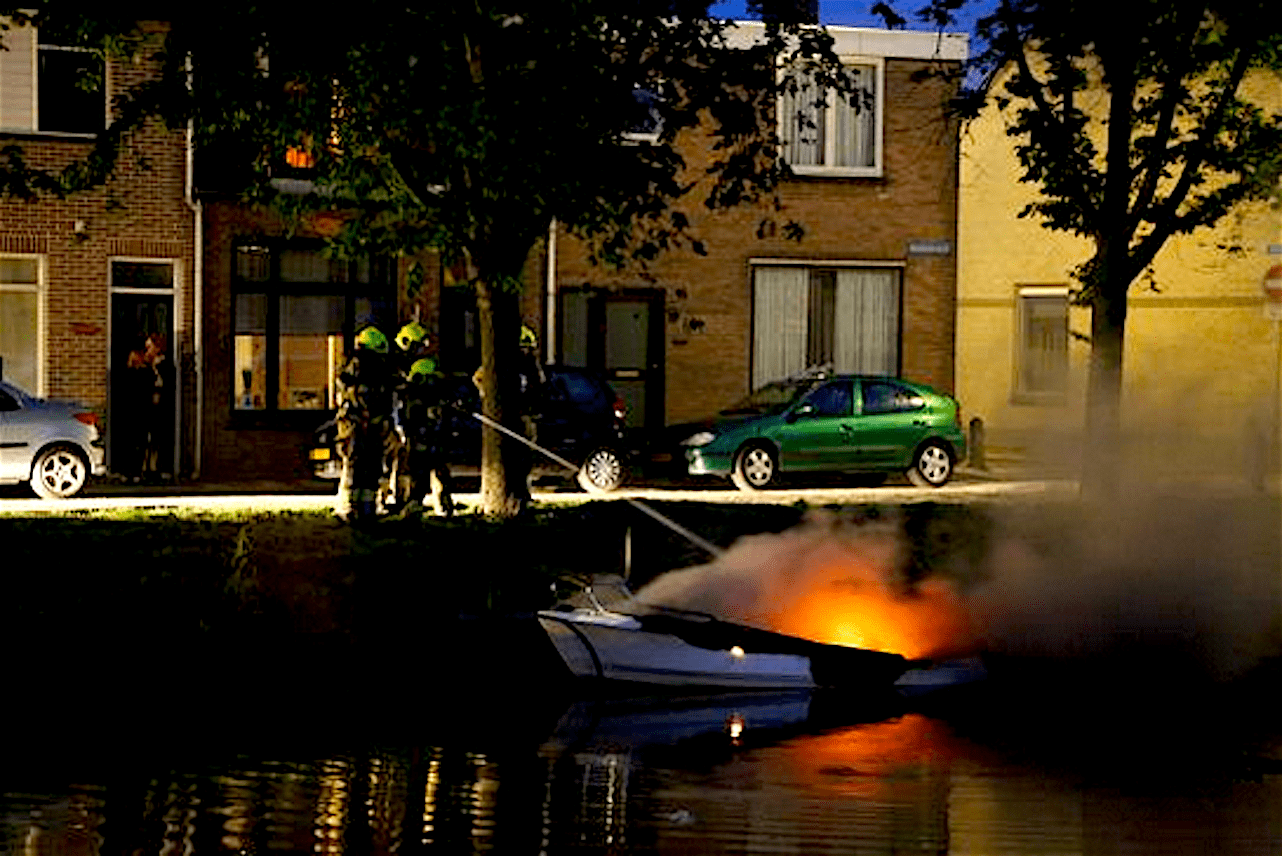 De brandweer was opgeroepen voor een ’scheepsbrand’ aan de Achterbinnenhaven, maar het bleek om het bootje aan de Bassingracht te gaan.