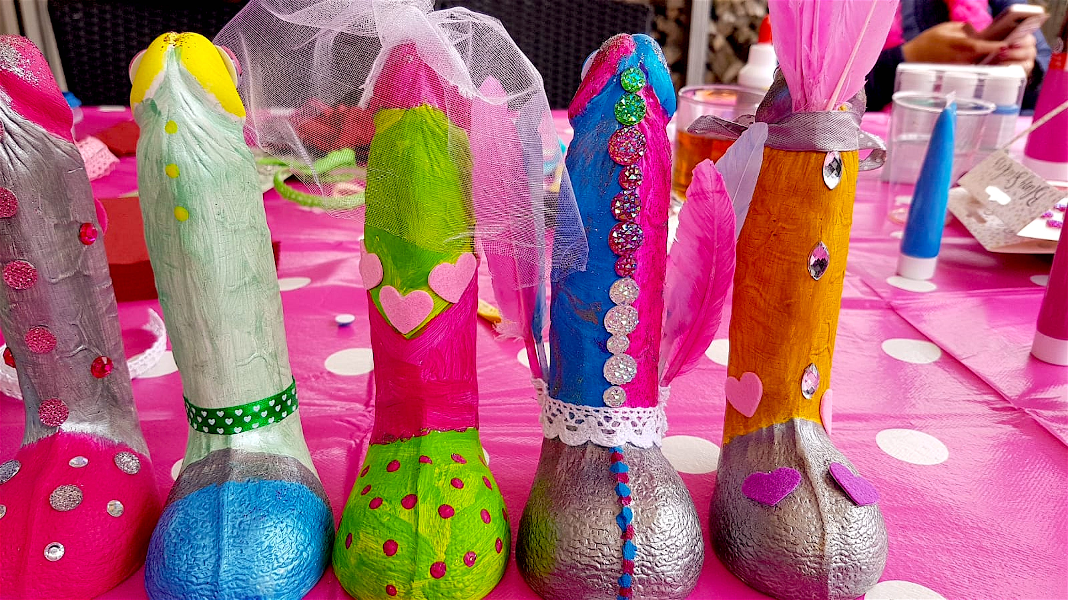 Voor de duidelijkheid: eentje van gips. Op mensen, die zich afvragen, of dit nou wel een geschikte activiteit is voor een buurthuis, laat staan een voormalig godshuis, antwoordt ze gevat” ’Hallo, dit is 2019’. “Er is ook niet zo veel seksueels aan. Vooral creatief en grappig. Sommige cursisten plakken oogjes op hun piemel, schilderen hem in zeven kleuren en zetten hem een gek hoedje op. Heerlijk.”