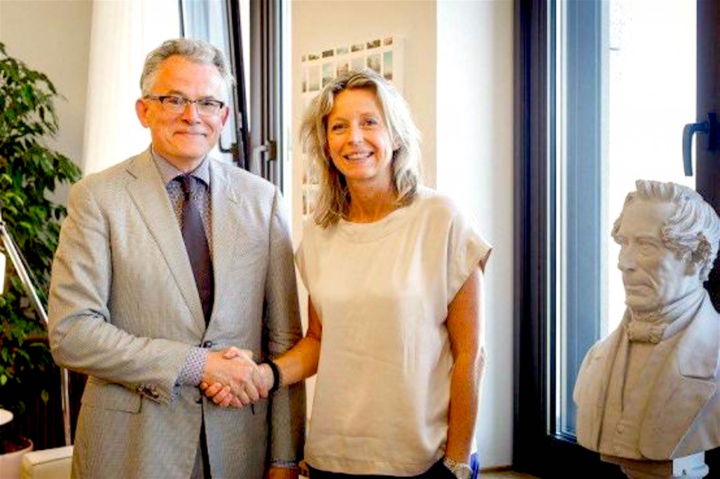 Nieuwe burgemeester van Groningen Koen Schuiling, persoonlijk verantwoordelijk voor ontruiming van het Rob Scholte Museum & minister van Binnenlandse Zaken Kasja Ollongren bij buste van Johan Rudolph Thorbecke (foto Binnenlandse Zaken)