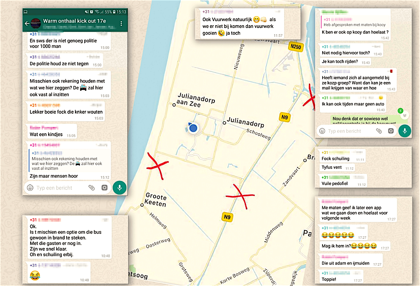 Ruim honderd van deze voorstanders hebben zich inmiddels georganiseerd en maken plannen in een whats app groep, waar de redactie van deze krant inzage in heeft gehad. Er wordt in die groep bijvoorbeeld gesuggereerd om voertuigen van tegenstanders in brand te steken en vuurwerk te gooien naar de demonstranten. Ook de Helderse burgemeester Schuiling moet het ontgelden, die deze week in een open brief opriep om de intocht vooral gezellig te houden.