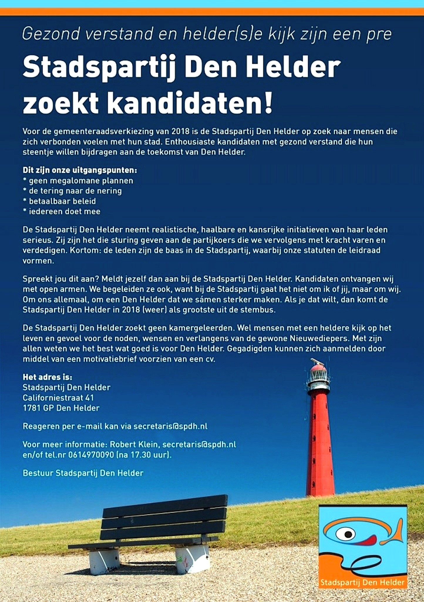 DEN HELDER – De Stadspartij Den Helder heeft de werving van een opvolger van wethouder Geurt Visser opgeschort.