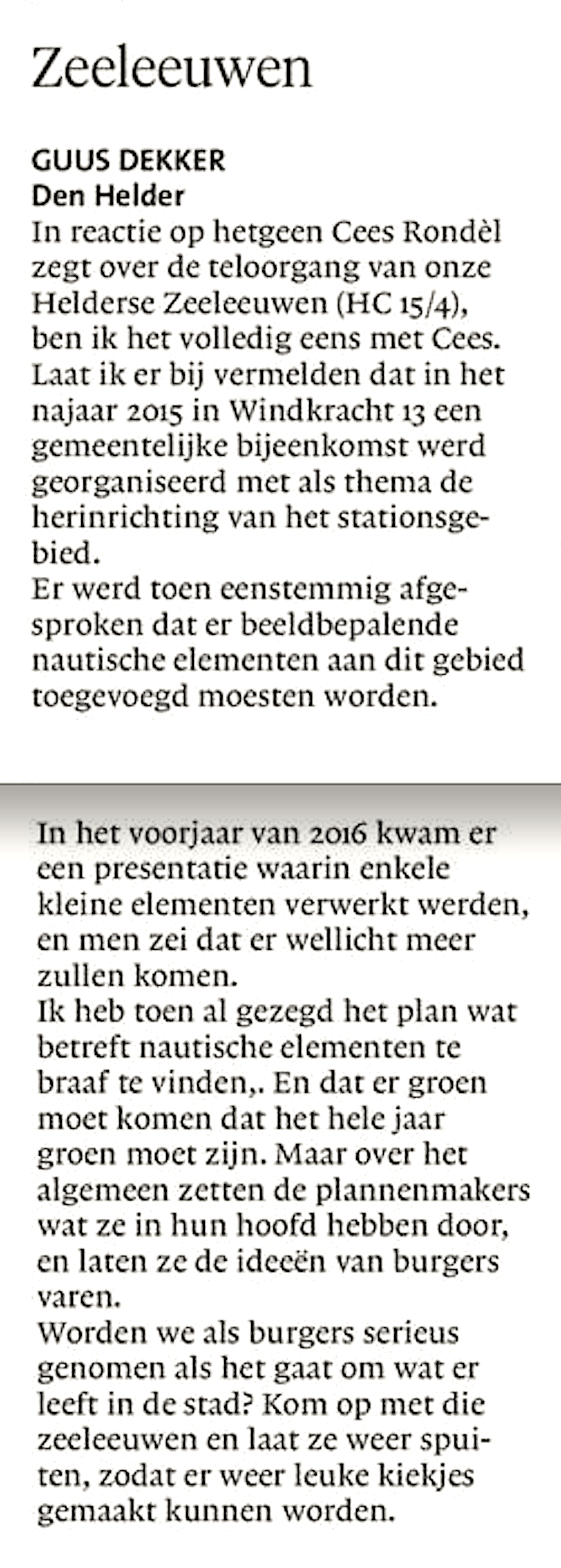Helderse Courant | Lezers schrijven – Guus Dekker: Zeeleeuwen 24 april 2017Businessplan, Home, Locatie, Media0 Helderse Courant, 22 april 2017 https://www.noordhollandsdagblad.nl/den-helder-eo Dit delen: Afdrukken (Opent in een nieuw venster) Print E-mail een link naar een vriend (Opent in een nieuw venster) E-mail Delen op Pinterest (Opent in een nieuw venster) Pinterest Delen op Bluesky (Opent in een nieuw venster) Bluesky Delen op Nextdoor (Opent in een nieuw venster) Nextdoor Delen op LinkedIn (Opent in een nieuw venster) LinkedIn Delen op WhatsApp (Opent in een nieuw venster) WhatsApp Delen op Threads (Opent in een nieuw venster) Threads Delen op Tumblr (Opent in een nieuw venster) Tumblr Delen op Mastodon (Opent in een nieuw venster) Mastodon Delen op Reddit (Opent in een nieuw venster) Reddit Share op Facebook (Opent in een nieuw venster) Facebook Delen op Telegram (Opent in een nieuw venster) Telegram Delen op X (Opent in een nieuw venster) X