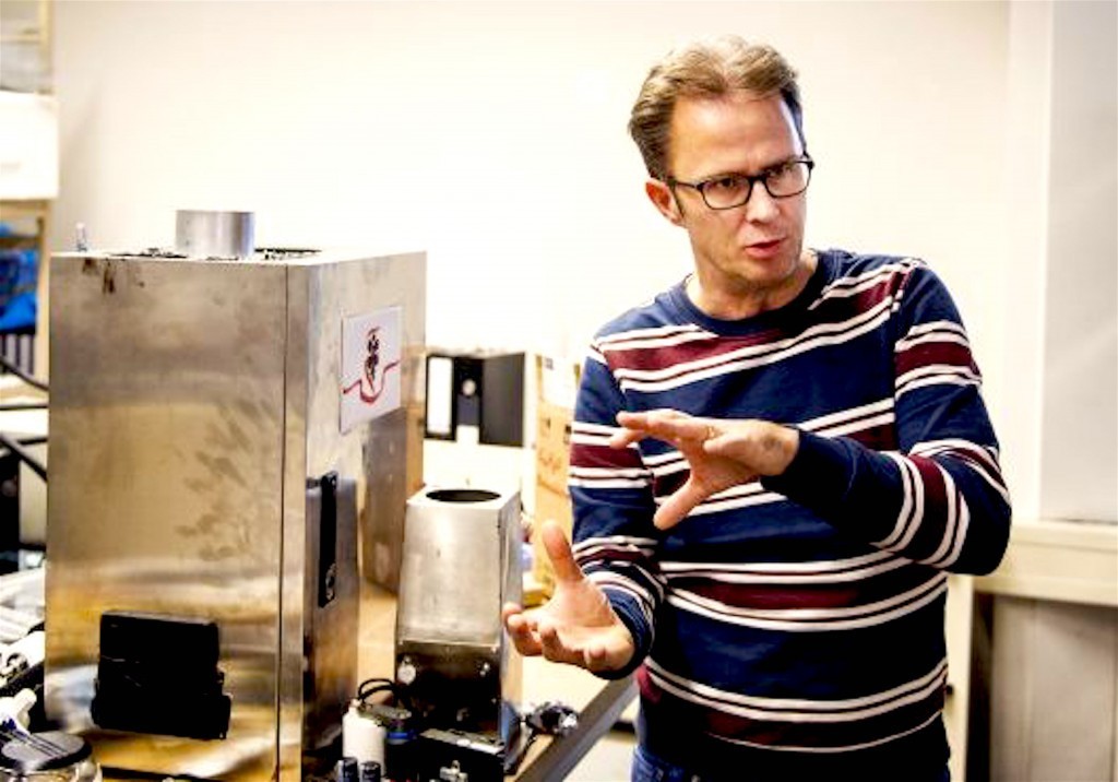 “Acht jaar geleden ben ik begonnen met de ontwikkeling van deze reactor. Het was niet eens mijn bedoeling om daarmee ammoniak uit de lucht te filteren“, zegt Kapitein. “Dit werd ‘ontdekt’ tijdens diverse testen in het lab en in het veld. Maar door de huidige stikstofcrisis is die toepassing opeens ontzettend actueel. Het is in de landbouwsector nu alle hens aan dek, er moet wat gebeuren. De luchtwassers, die nu worden gebruikt bij de grote stallen halen maar veertig procent ammoniak uit de lucht, dat zijn enorme installaties. Mijn reactor is tweemaal zo efficiënt en veel compacter en gebruikt minder energie, geen water en geen chemicaliën. Door de Technische Universiteit Eindhoven is nu bewezen, dat je hiermee het snelst een bijdrage kunt leveren aan het terugdringen van de uitstoot van een stal.”
