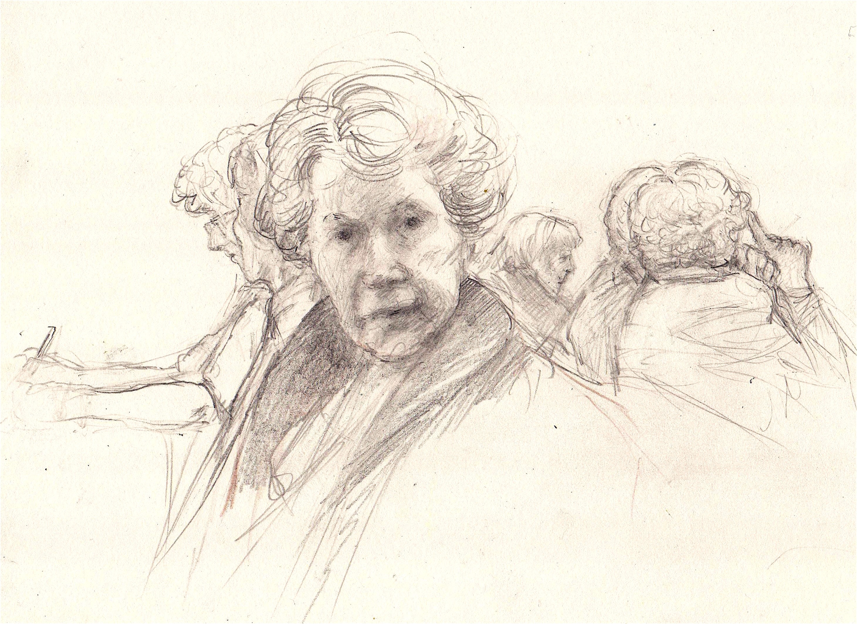 Ze neemt een pen ter hand en krabbelt in woeste halen: